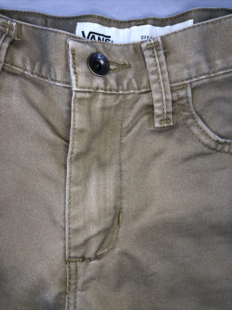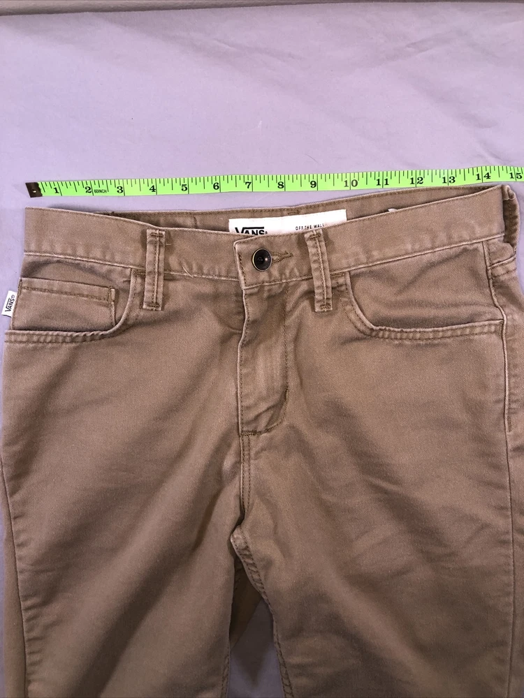 Size Type:RegularOccasion:CasualWaist Size:28 inTheme:AmericanFeatures:PocketsUPC:Does not applyAccents:ButtonFabric Type:CanvasDepartment:MenFit:RegularMaterial:CottonStyle:ChinoColor:BrownBrand:VANSgtin13:Does not applyCountry/Region of Manufacture:UnknownVintage:NoFront Type:Flat FrontPattern:SolidCharacter:menFabric Wash:DarkSize:28Character Family:Free!