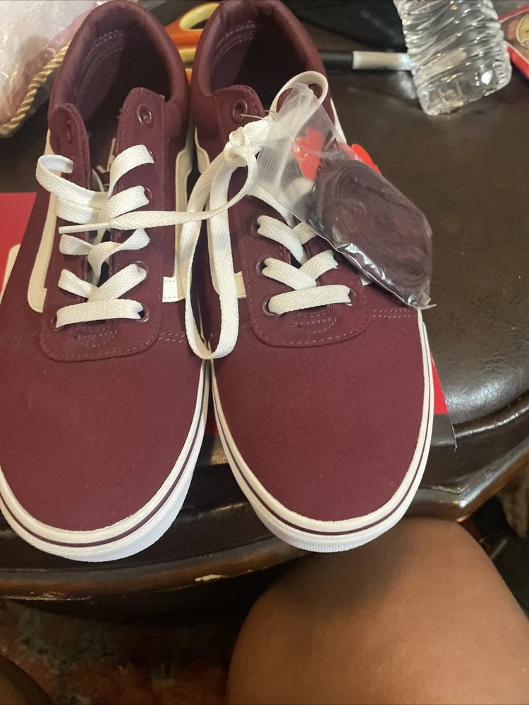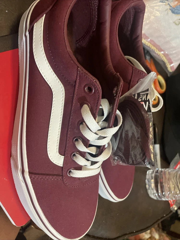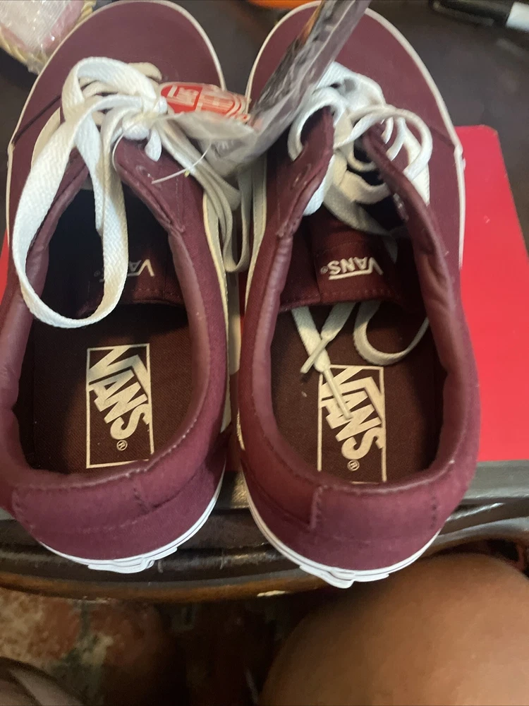 Elevate your skate style with these Vans Off The Wall Old School Women Shoes. The burgundy and white color combination will make you stand out in a crowd while the comfortable fit and athletic style will keep you going all day long. These sneakers are perfect for any woman who wants to add a touch of style to her wardrobe. With a US shoe size of 10, these sneakers are made for women who want to make a statement with their footwear. The Vans Off The Wall model is designed for women who love sneakers that are both stylish and functional. These sneakers are perfect for any woman who wants to add a touch of style to her wardrobe. The red color and athletic style make them perfect for any occasion. The sneakers are made for women who love sneakers that are both stylish and functional. The Vans Off The Wall Old School Women Shoes are the perfect addition to any woman's shoe collection.