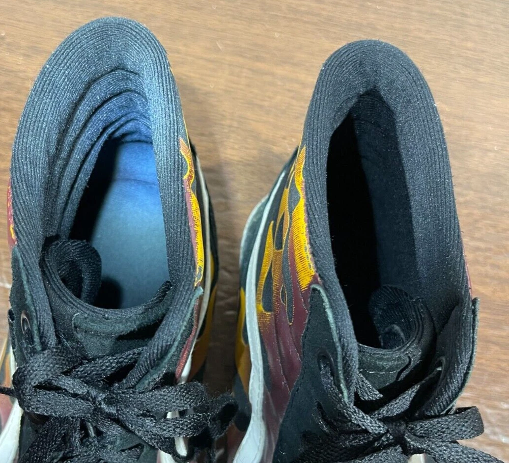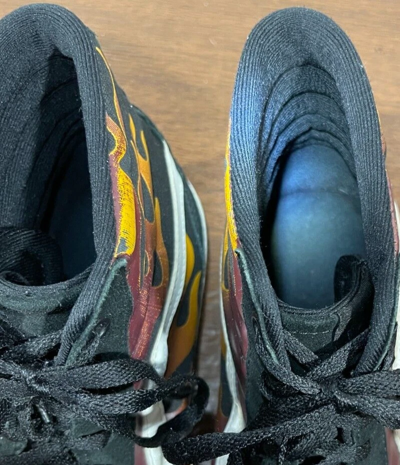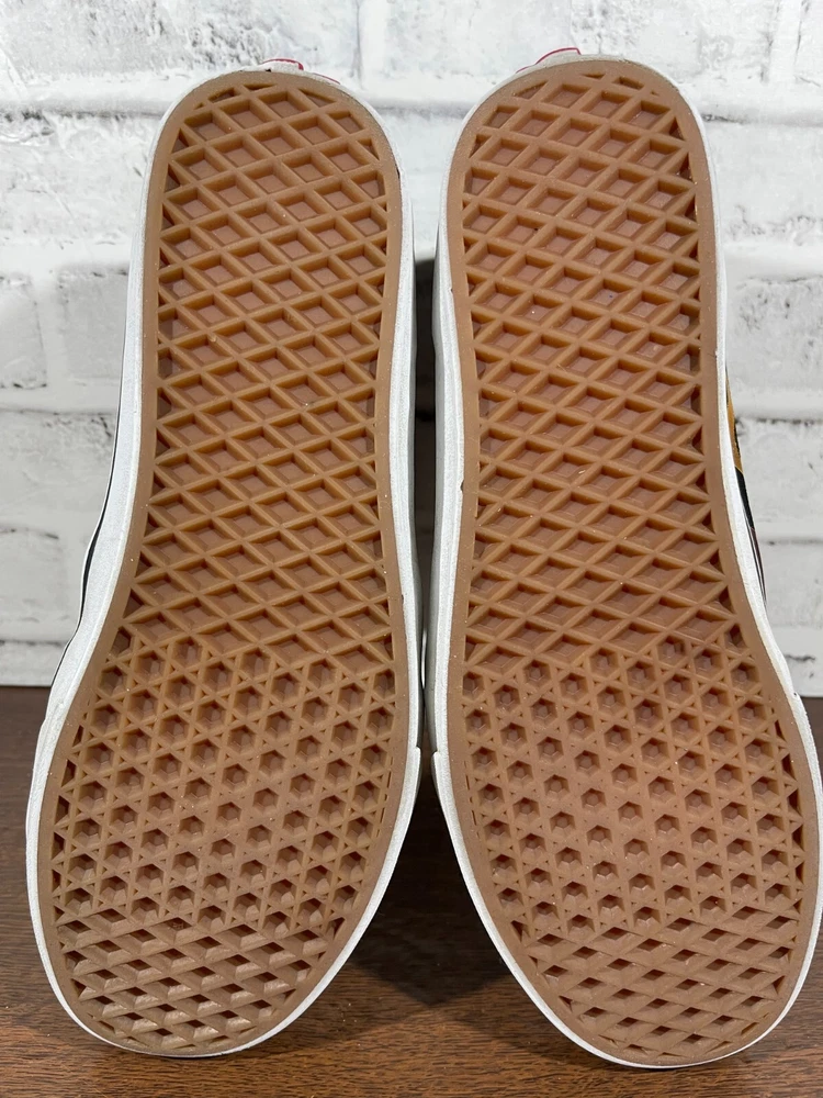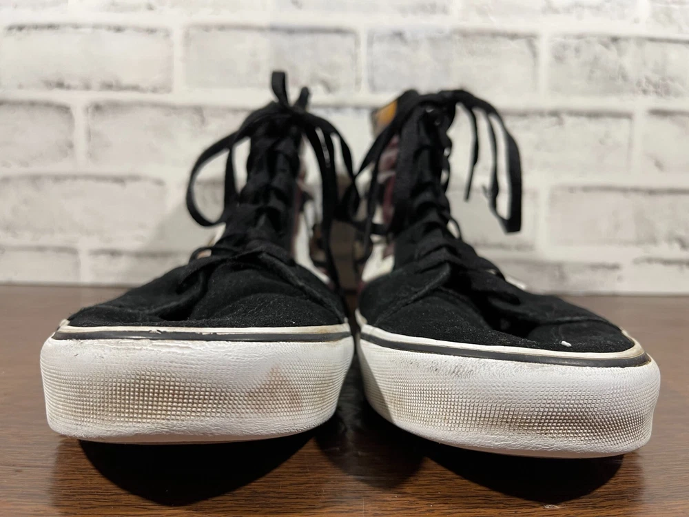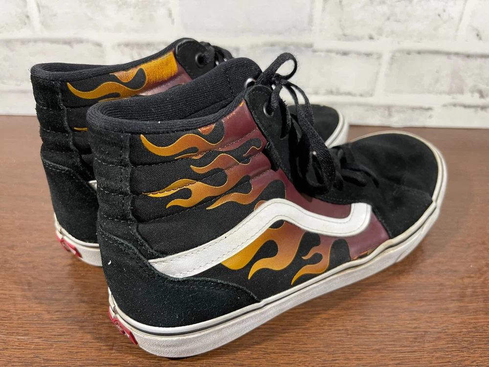 Vans Old School Sneakers in Men's size 11 feature a black suede upper with flame design, lace-up closure, high-top shaft style, rubber outsole, and cushioned, breathable comfort. The classic retro style is perfect for activewear, casual, or workwear use. Ideal for winter, summer, fall, or spring seasons, these VANS sneakers are a colorful addition to any wardrobe. Very good preowned condition with normal preowned wear and no issue. Please see all photos. For clothing specifically, see photos for all measurements and/or any issues if applicable. Pay close attention to the measurements as the size of the garment may quite possibly be different than the actual measurement(s) due to washing, shrinkage, or stretching as these are used clothes. The size in the title is the size on the tag of the garment. See photos for measurements of actual measurements as they may differ. ALWAYS CHECK THE MEASUREMENTS IN THE PHOTOS. This will remove any questions on measurements as well as always cover the possibility of human error in the listing(s) in the case of a typo or oversight. All clothing and shoes have been washed/cleaned, and comes from a smoke free environment. If shoe trees appear in the photos, they are for photography purposes only to illustrate how the shoes look filled out, and are not included. I am available for questions. I accept or negotiate reasonable offers. Have an amazing day. Thank you.