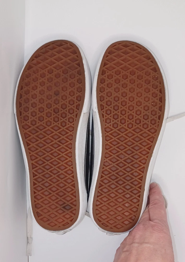 Elevate your casual style with these classic Vans Old Skool sneakers. The black and white colorway with a solid pattern and low top shoe shaft style makes them a versatile choice for any occasion, from walking to school to even skateboarding. The lace-up closure ensures a secure fit, while the cushioned, comfortable, and breathable features make them ideal for all-day wear. These unisex athletic shoes are made with canvas upper material and are part of the Vans Old Skool product line. They come in women's US size 7 and are perfect for those who want a colorful and classic look. Get ready to step out in style with these Vans Old Skool sneakers, suitable for any season - winter, summer, fall, and spring.