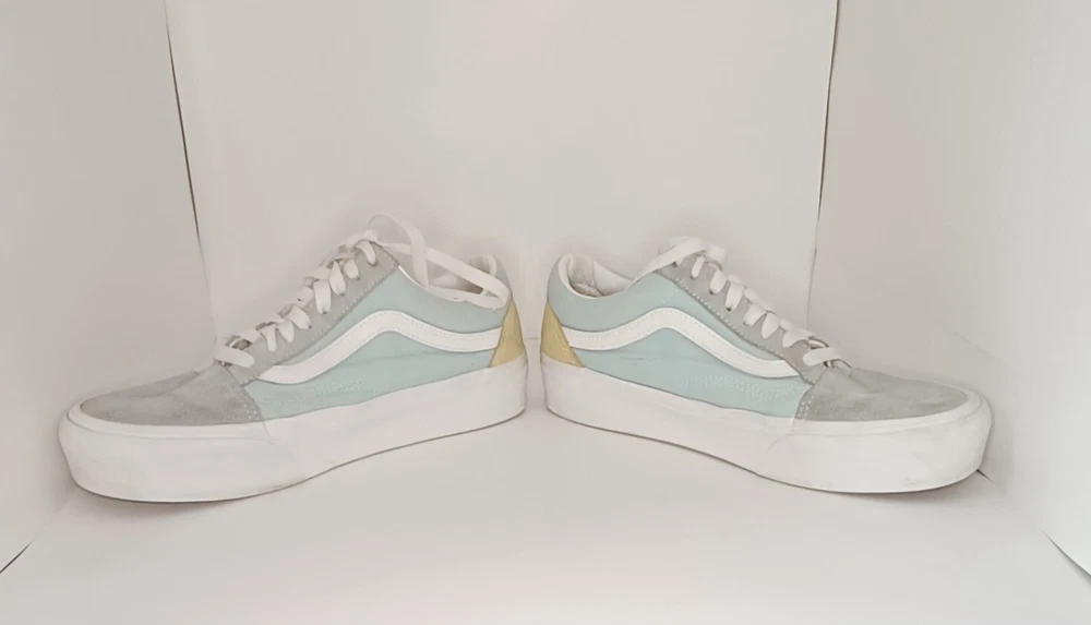 Vans Old Skool Womens sz8 Mens sz 6.5 Blue Gray Yellow Pink Casual Shoes Sneaker