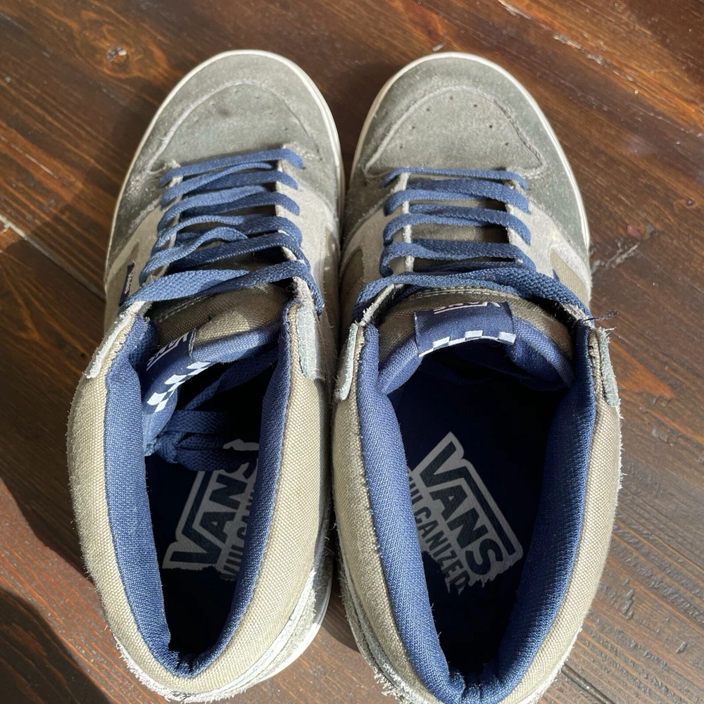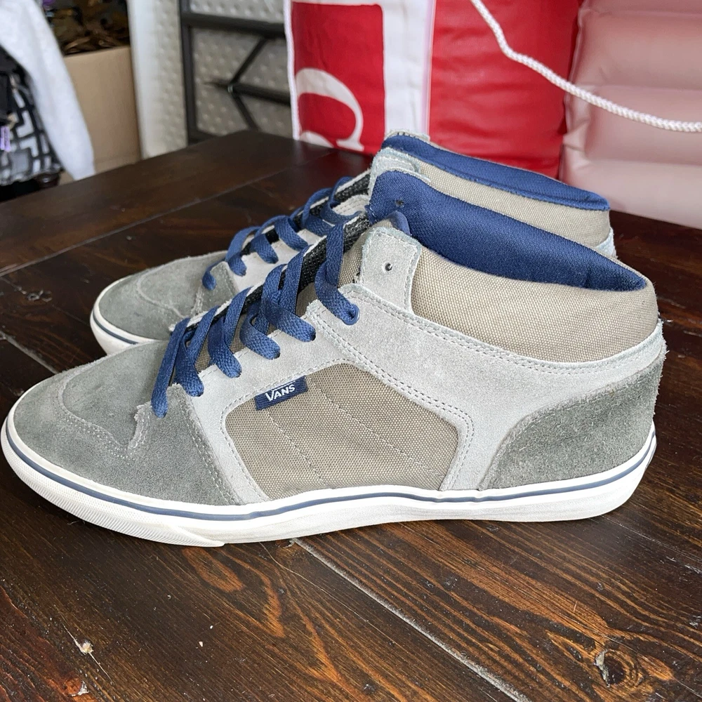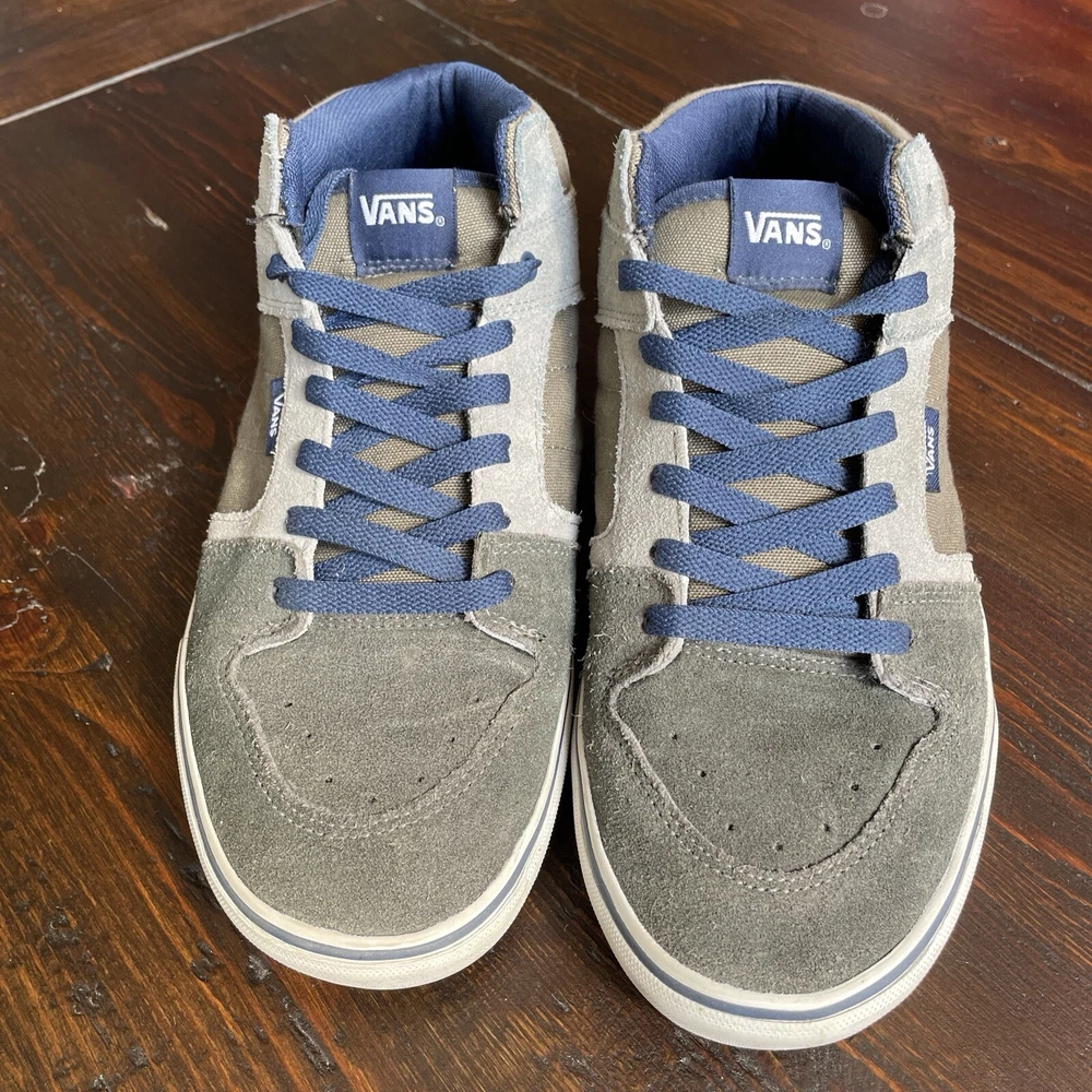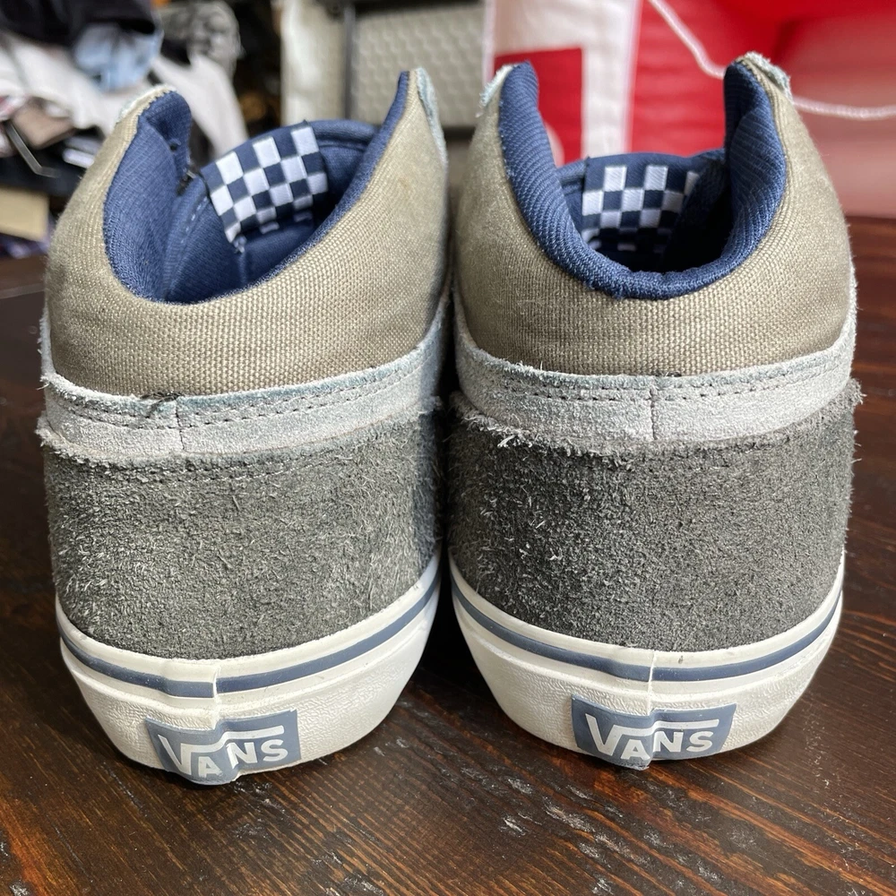 Vans Pro Skate Men's Chukka Midtop Gray Tan Size 9 Great VANS Quality, Design, and Comfort! The color is gray, tan, and beige, see photo’s Uppers are clean with no dirt, one small spot and all stitching is intact with no loose seams, see photos Ankle cushioning is in excellent condition with no dirt or rips and no “fuzzies “, see photos Soles are in excellent condition with no dirt and with little, if any, wear, see photos