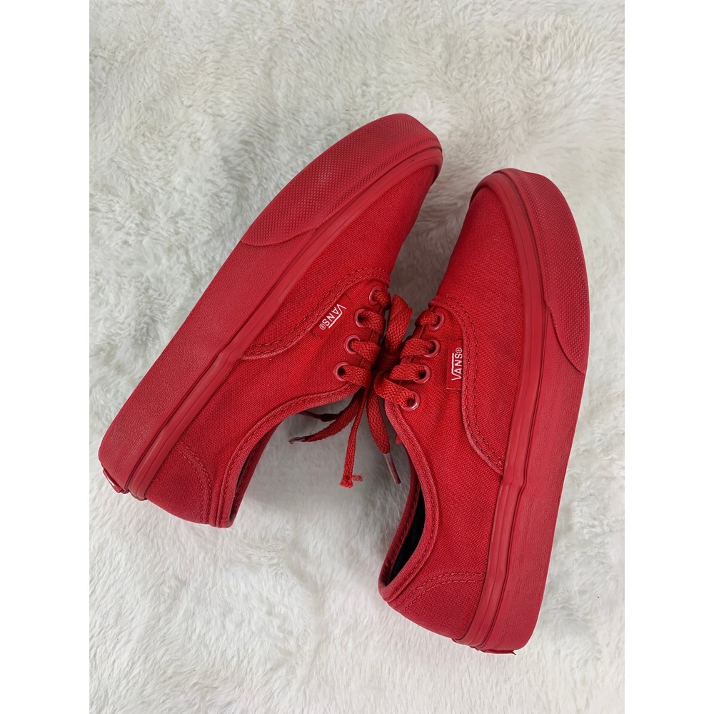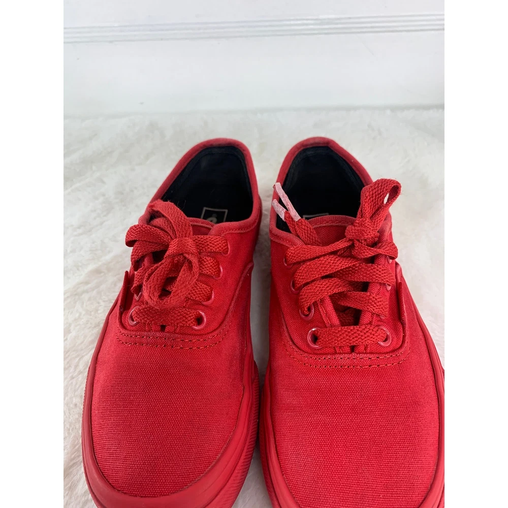 Vans classic low-top skate shoes for kids in vibrant red canvas, size 2. Durable with a rubber waffle sole for grip and comfort, perfect for everyday wear and skating. These are USED with some light wear visible; please see photos for condition details. Refer to all photos for the most accurate representation of the item’s condition.