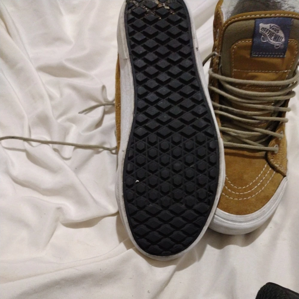 Everything looks close to new including the soles, tan material and the faux . The white rubber could use some dishwashing liquid with a toothbrush. It doesnt look lke these shoes were used very much. Elevate your sneaker game with these Vans SK8-Hi Tan Suede Faux Fur Sherpa Lining sneakers. With a high top shoe shaft style and a striking red color, these sneakers are a must-have for any fashion-forward woman. The faux suede outsole material and faux fur upper material provide durability and comfort, while the scotchguard feature ensures easy maintenance. These athletic sneakers are perfect for any casual occasion, and the size 8 women's shoes and 7.5 US shoe size make them a great fit for most women. The Vans SK8 model is a classic, and these sneakers are part of the VANS Sk8 product line. Don't miss out on the chance to add these stylish sneakers to your collection.