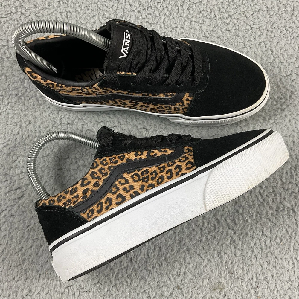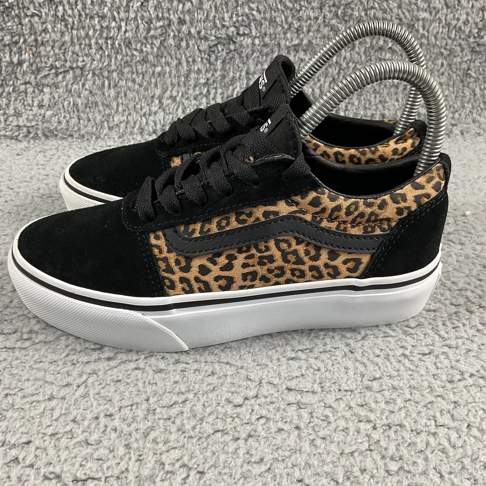Vans Shoes Old Skool Leopard Black Canvas Suede Girls 3 Sneakers Low Top Lace Up Tag Size: Kids, Girls US 3 Style: Lace Up closure Color: Black, Brown Condition: Great condition. No rips, holes, or tears. Please see the pictures for more details. Smoke free. No Box. Please make sure to view and zoom in on all photos to determine the condition of the shoes. Fast Shipping! I always carefully package and ship Same or next Day. Reach out with any questions! Pair in photos is the exact pair you will receive. Check out my STORE for any other pairs of shoes you may be interested in! RS011815-BOX-