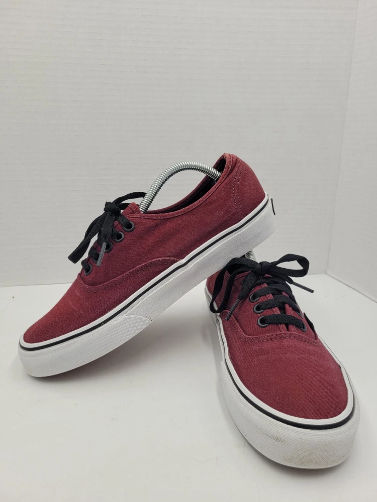 Elevate your sneaker game with these Vans Skate Shoes in a stunning maroon burgundy plum dark red color. These men's shoes feature a lace-up closure and a low-top shoe shaft style, perfect for both activewear and casual occasions. The rubber outsole provides excellent durability, while the cushioned, breathable insole ensures maximum comfort during any season. These VANS Off The Wall sneakers are perfect for walking, weightlifting, school, skateboarding, bodybuilding, and any other sports or outdoor activities. The solid pattern, combined with the USA, streetwear, American, outdoor, skate, skateboarding, classic, and sports themes, make these shoes a must-have for any sneakerhead. Don't miss this chance to own a piece of VANS history. E