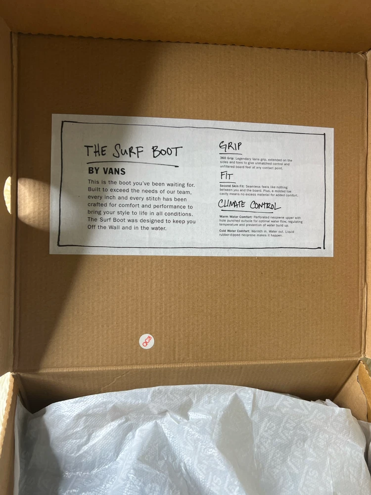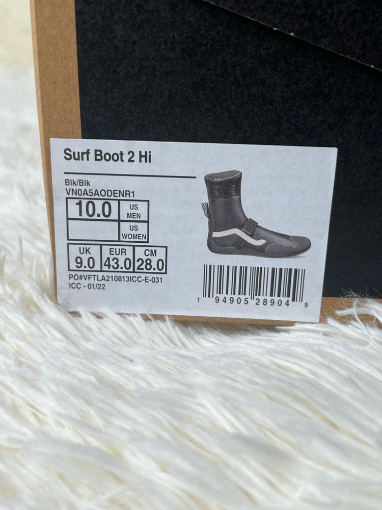 Vans Surf Boot 2 Hi Brand New, Never worn With Original Vans Cardboard Box US Size 10 Mens Great shoes for surfing 5 millimeter-thick neoprene, outstanding when dealing with water Slip-on design, for ease of use Can be tightened with the velcro strap for optimal usage International Shipping is only 1-2 Weeks