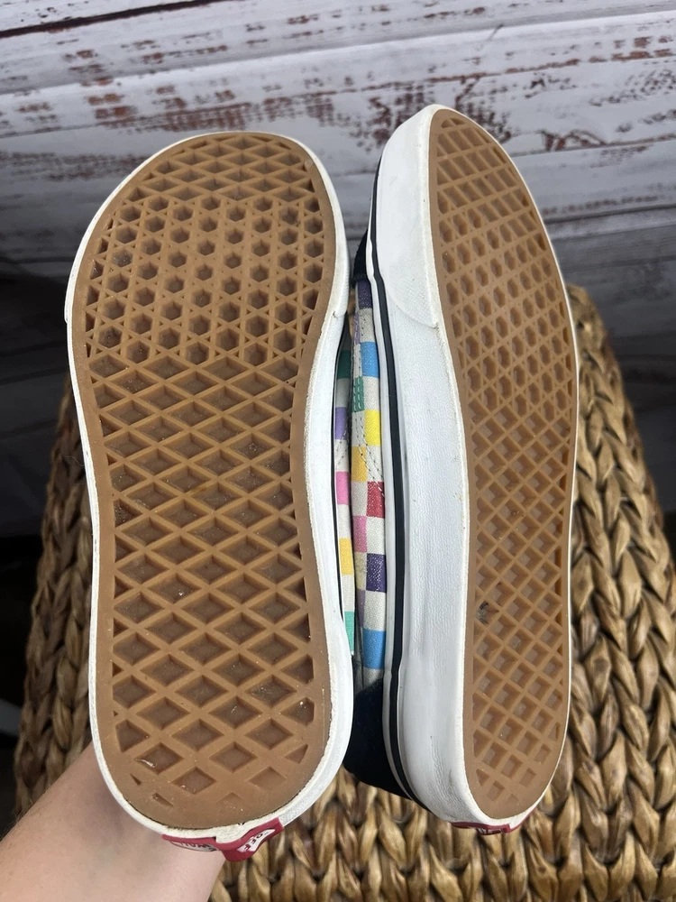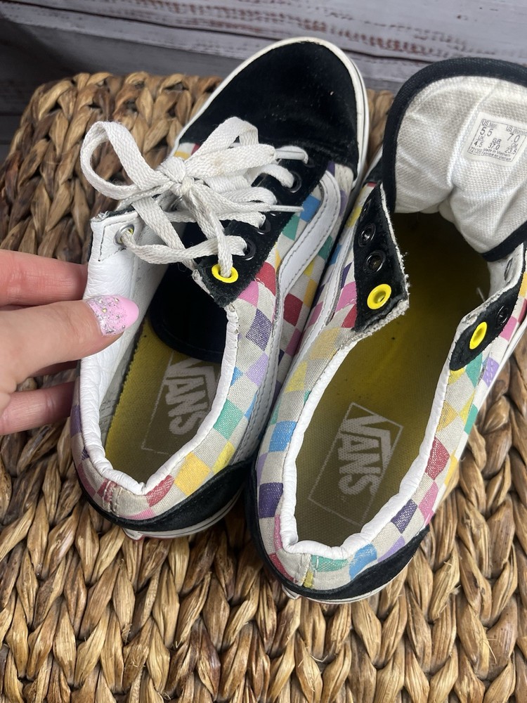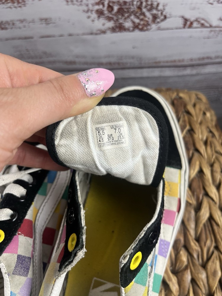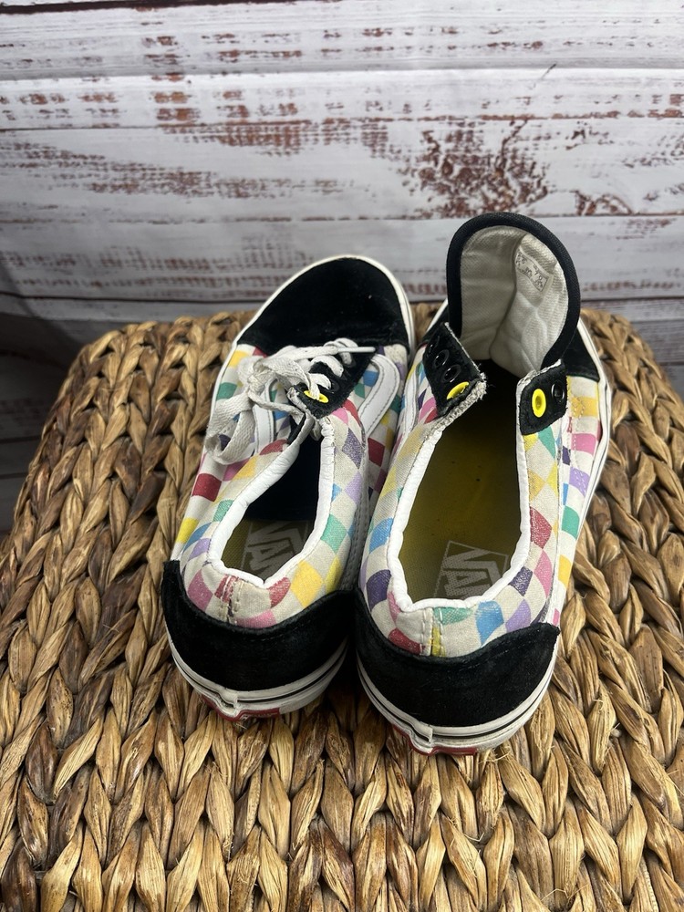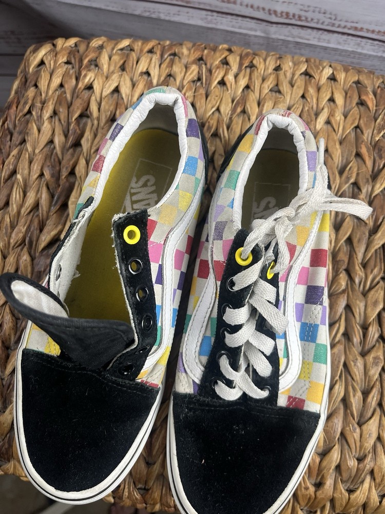 Elevate your shoe game with these colorful VANS Old Skool sneakers. These lace-up athletic shoes are perfect for both men and women, with a US shoe size of Mens 5.5 Women 7 and a UK shoe size of 4.5. The multicolor design adds a pop of color to any outfit and is sure to turn heads. These VANS sneakers are made for those who love quality and style. With a brand name like VANS and a style code of 721356, you can be sure that you are getting a product that is both durable and fashionable. Whether you are skateboarding or just running errands, these shoes will keep you looking sharp. Don't miss out on the chance to own these iconic sneakers. Please note one of the shoes is missing the lace please refer to pictures for condition thank you