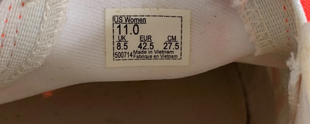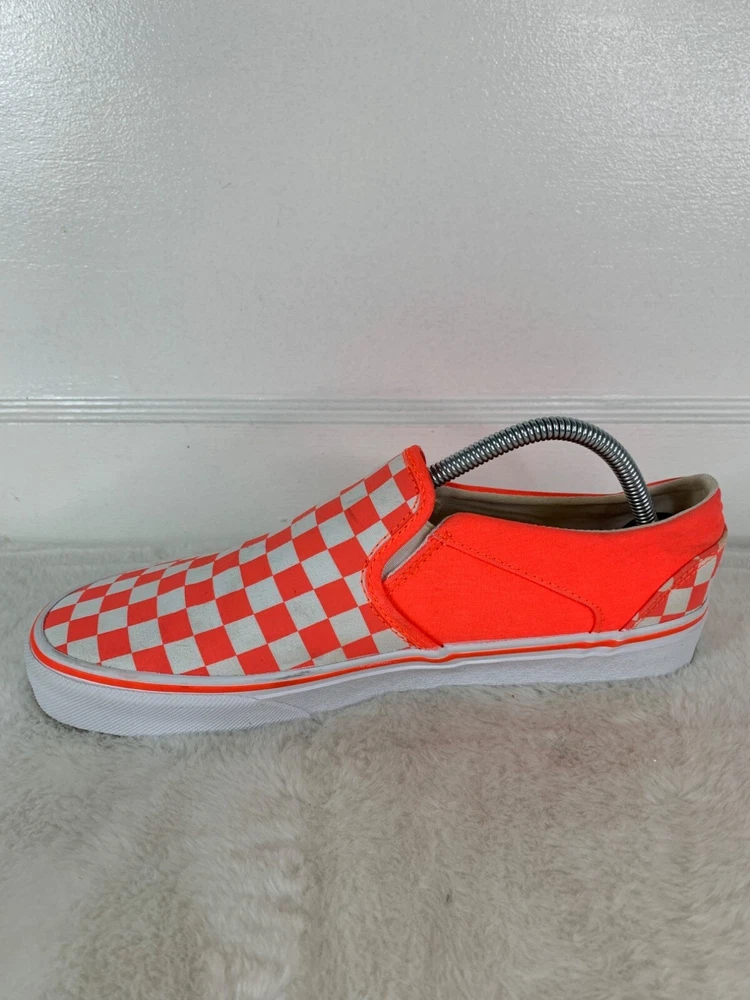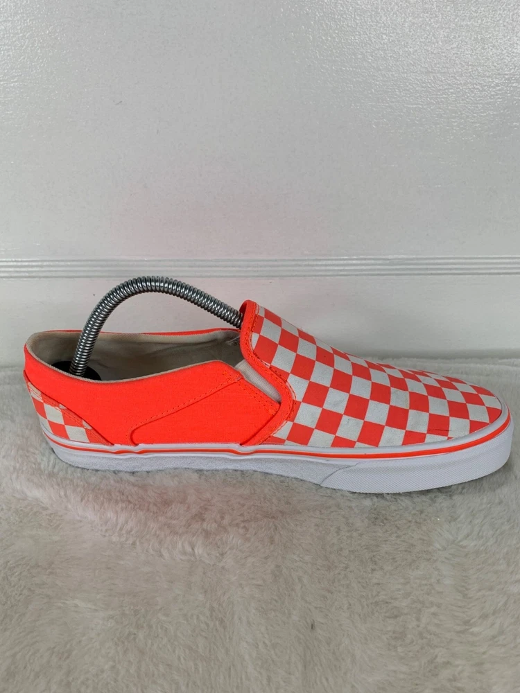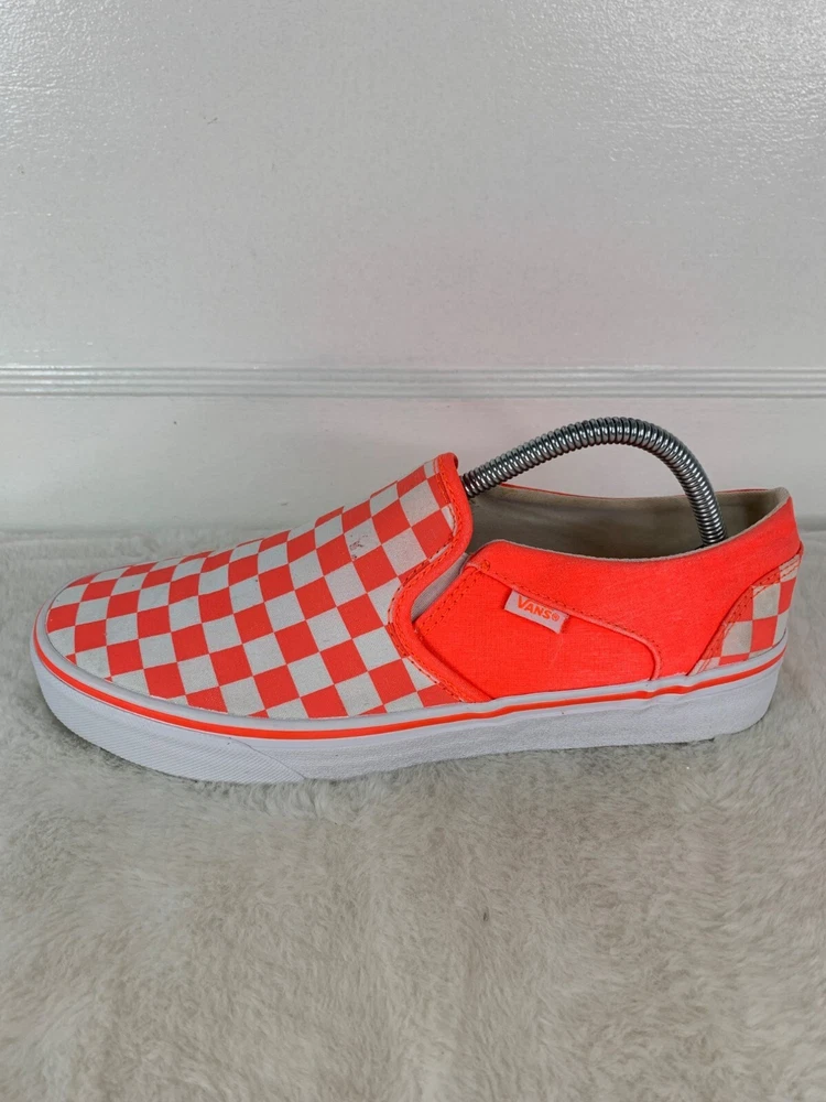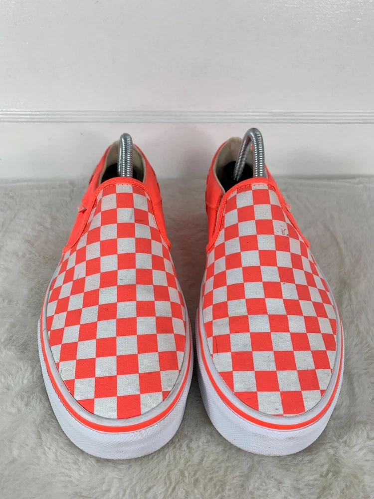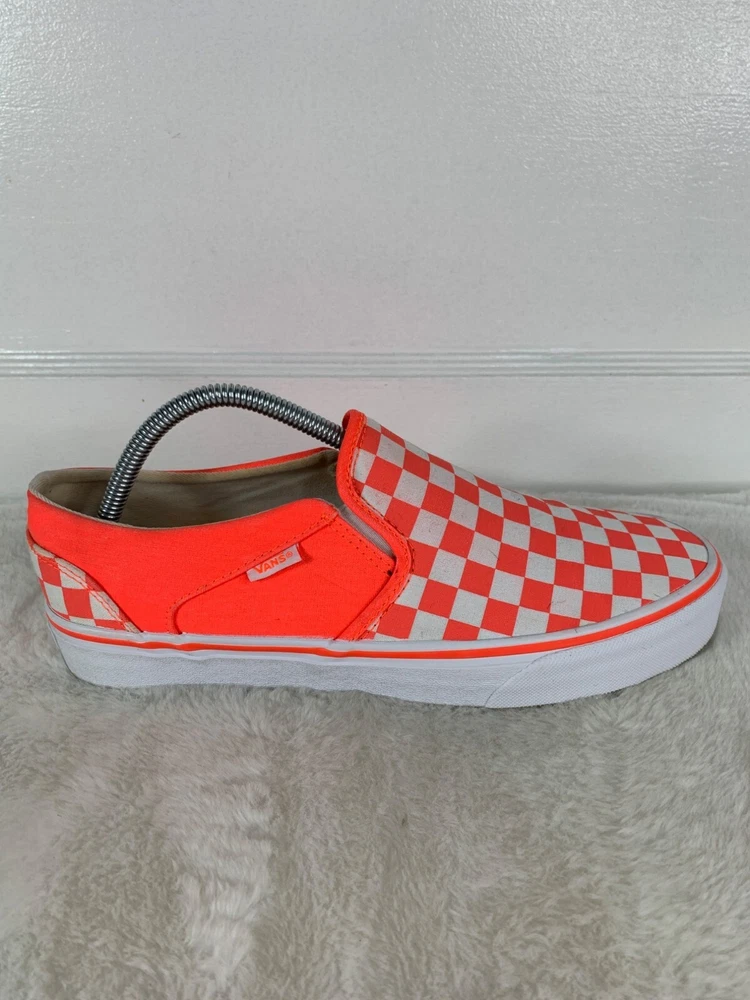 Shoe Shaft Style: Low Top EU Shoe Size: 42 Style: Sneaker Color: Orange UK Shoe Size: 9 US Shoe Size: 11 Type: Athletic Upper Material: Canvas Department: Women Pattern: Checkered Brand: VANS Closure: Slip On Model: VANS Slip-On
