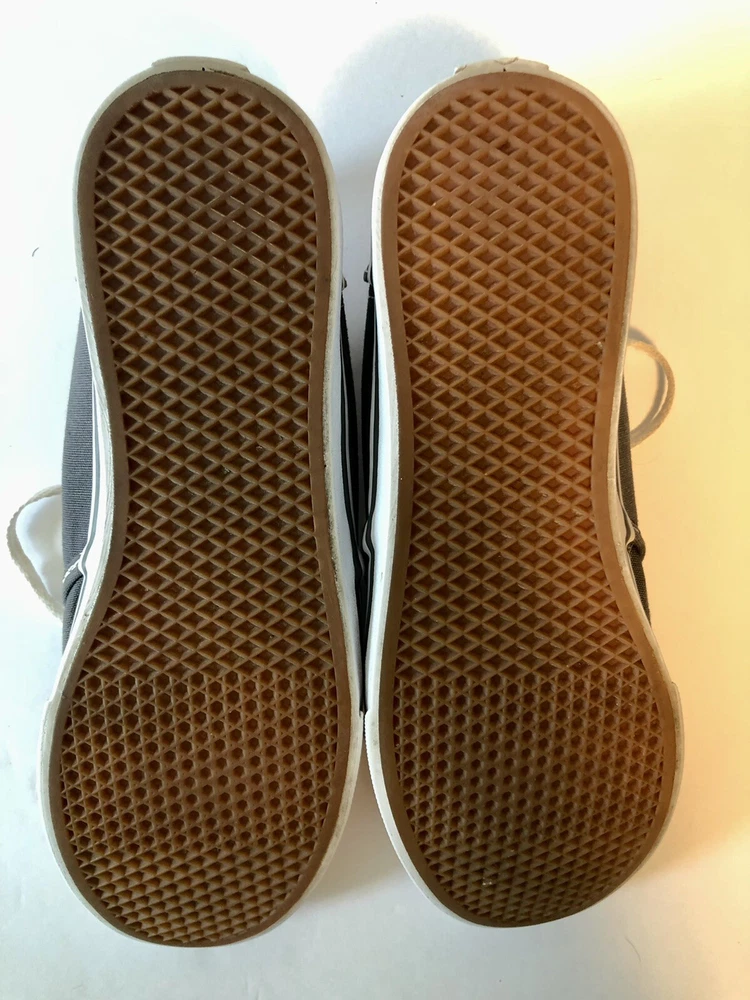 Vans Women’s Gray Skater Shoes, size 8. Good pre owned condition. There is a spot on the one shoe by the toe see photos. Bin K