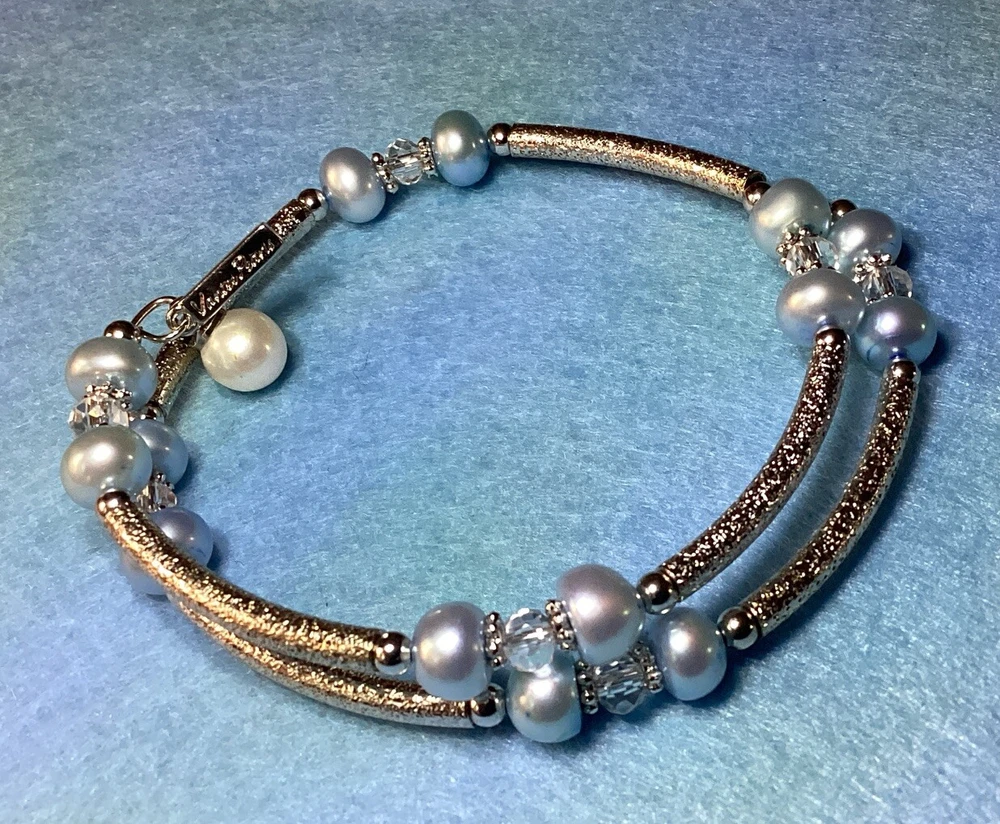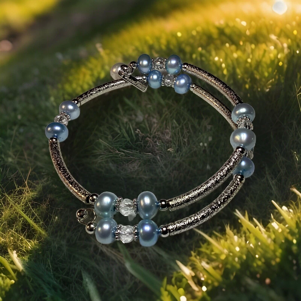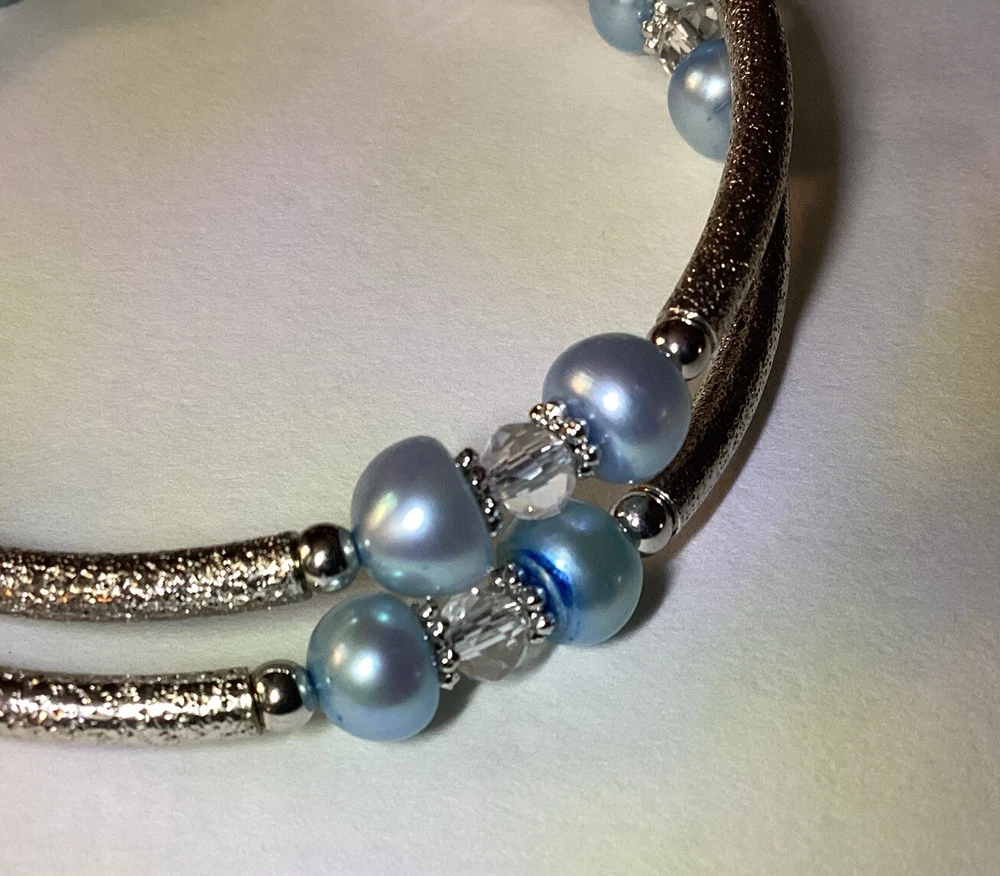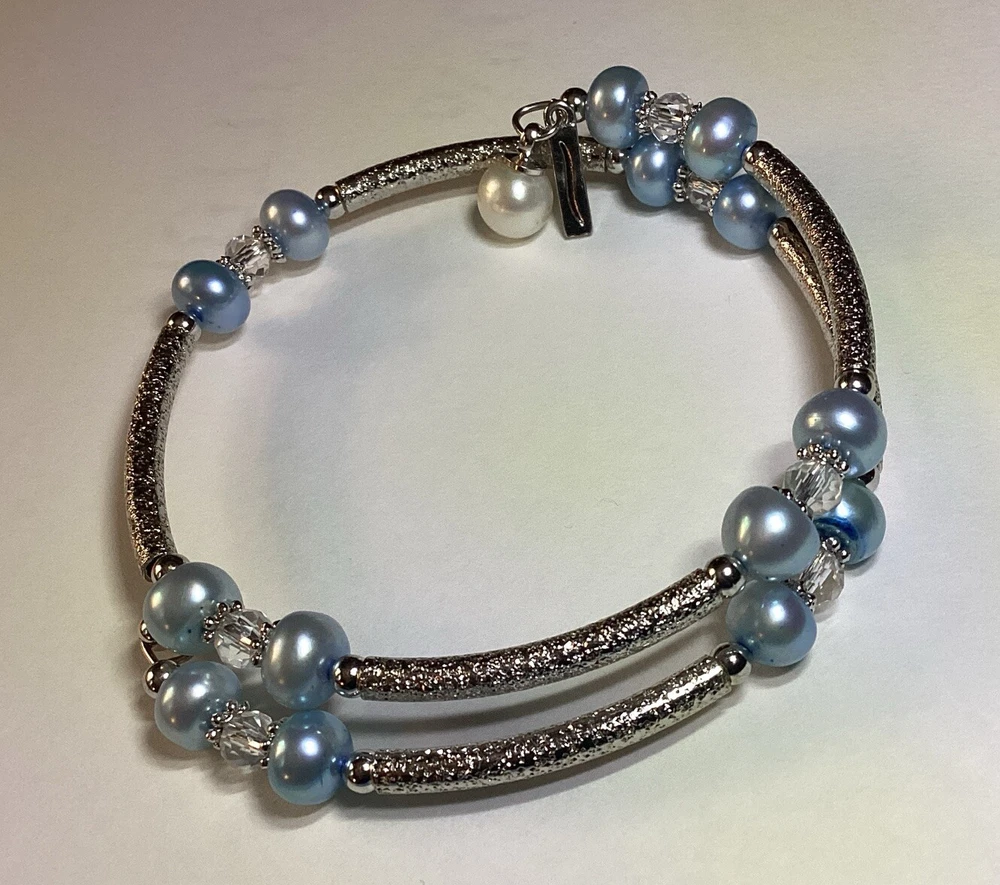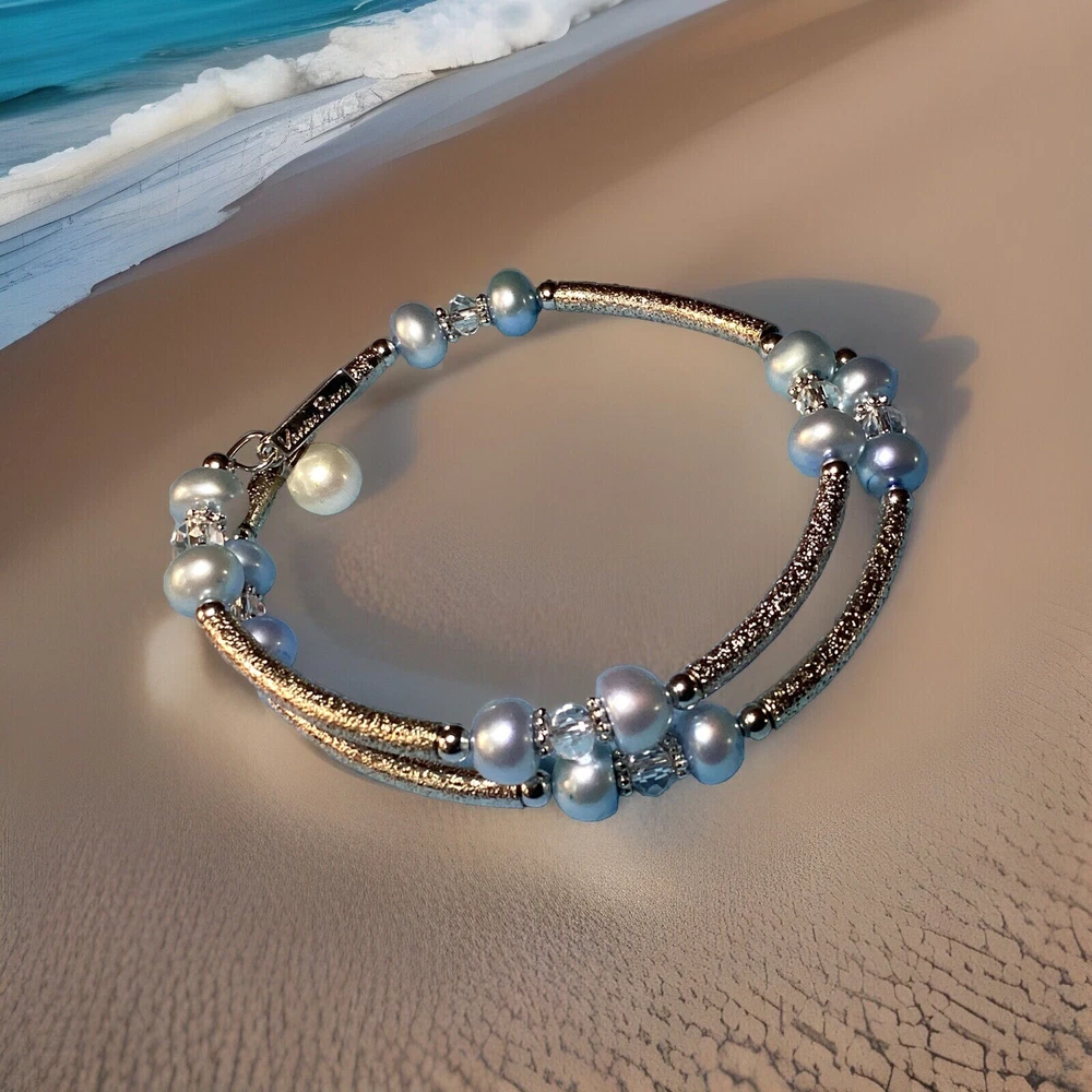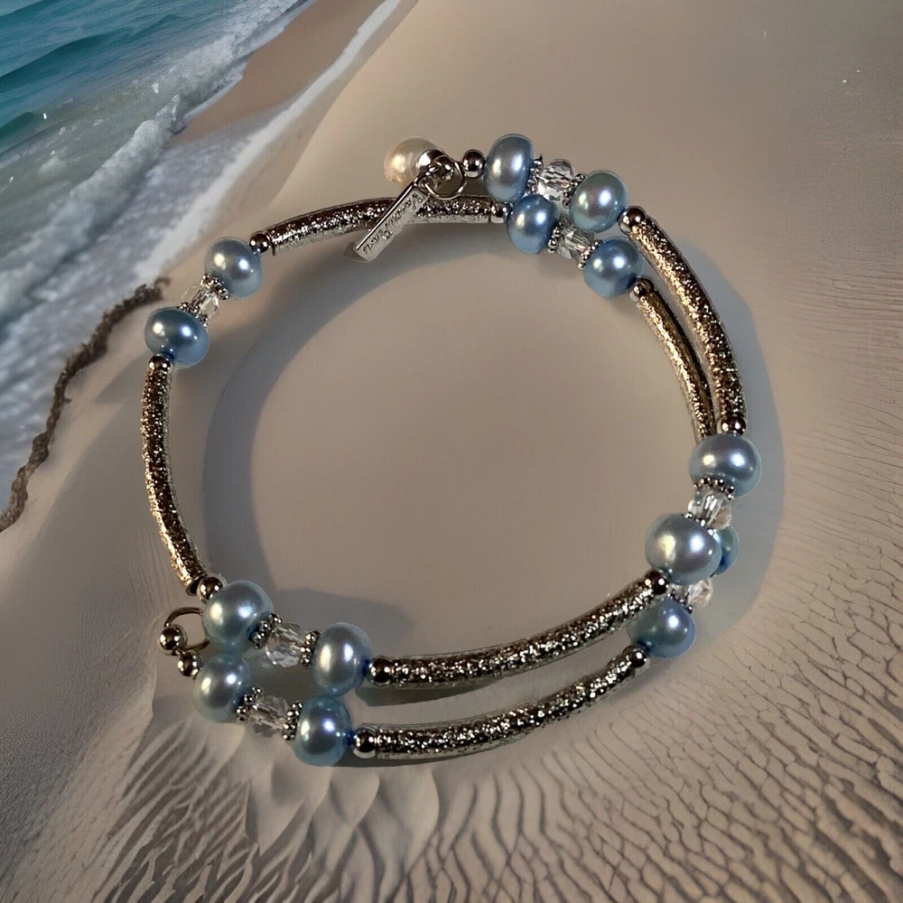Vantel Pearls Baby Blue & Silver Wrap Bracelet.