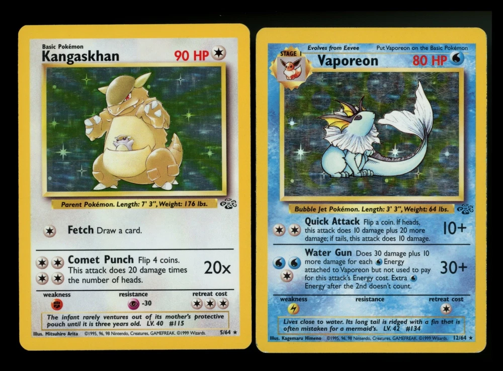 Vaporeon 12/64 Kangaskhan 5/64 Jungle 1999 Holo Vintage Pokemon Card Lot WOTC