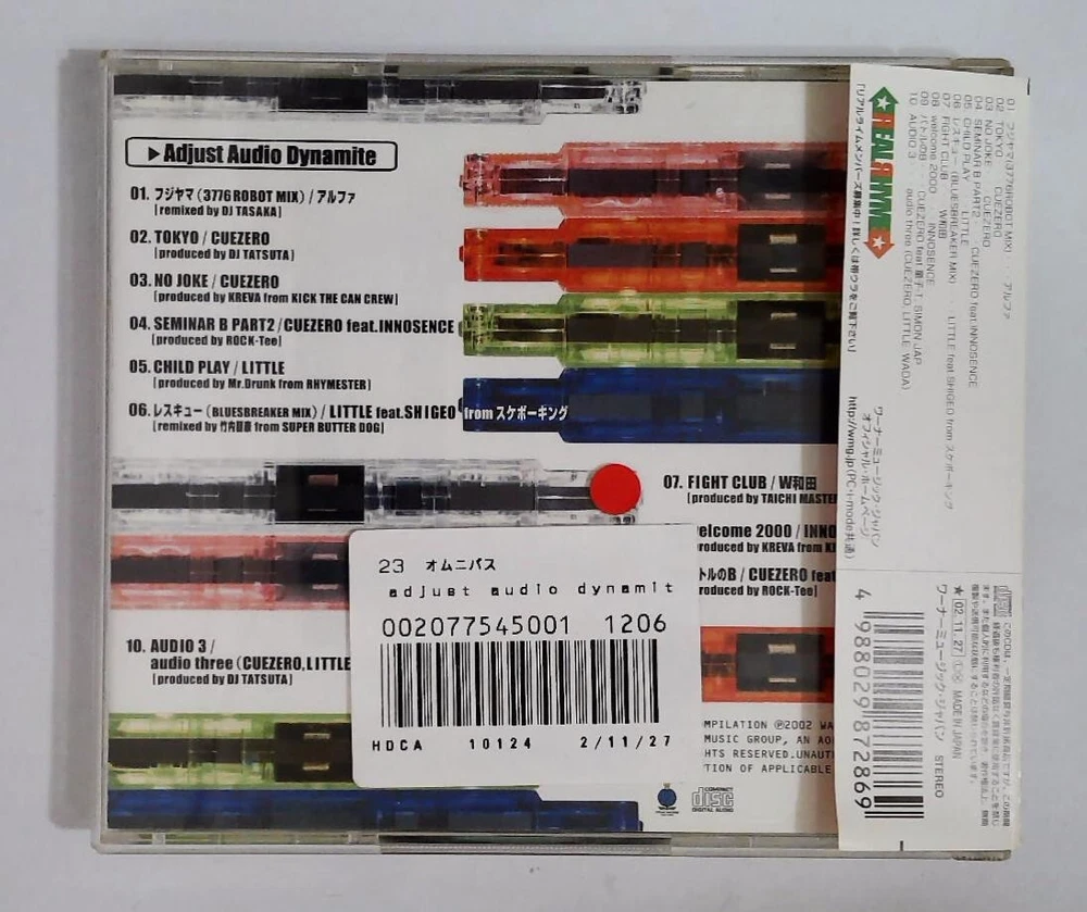 1 アルファ– フジヤマ (3776ROBOT Mix) 2 Cuezero– Tokyo 3 Cuezero– No Joke 4 Cuezero Feat. INNOSENCE– Seminar B Part2 5 Little (10)– Child Play 6 Little (10) Feat. Shigeo– レスキュー(Bluesbreaker Mix) 7 W和田– Fight Club 8 INNOSENCE– Welcome 2000 9 Cuezero Feat. 童子-T*, Simon Jap– バトルのB 10 Audio Three– Audio 3