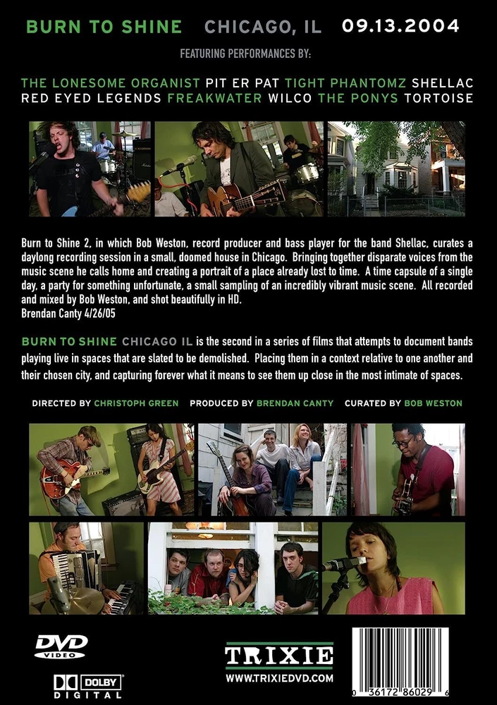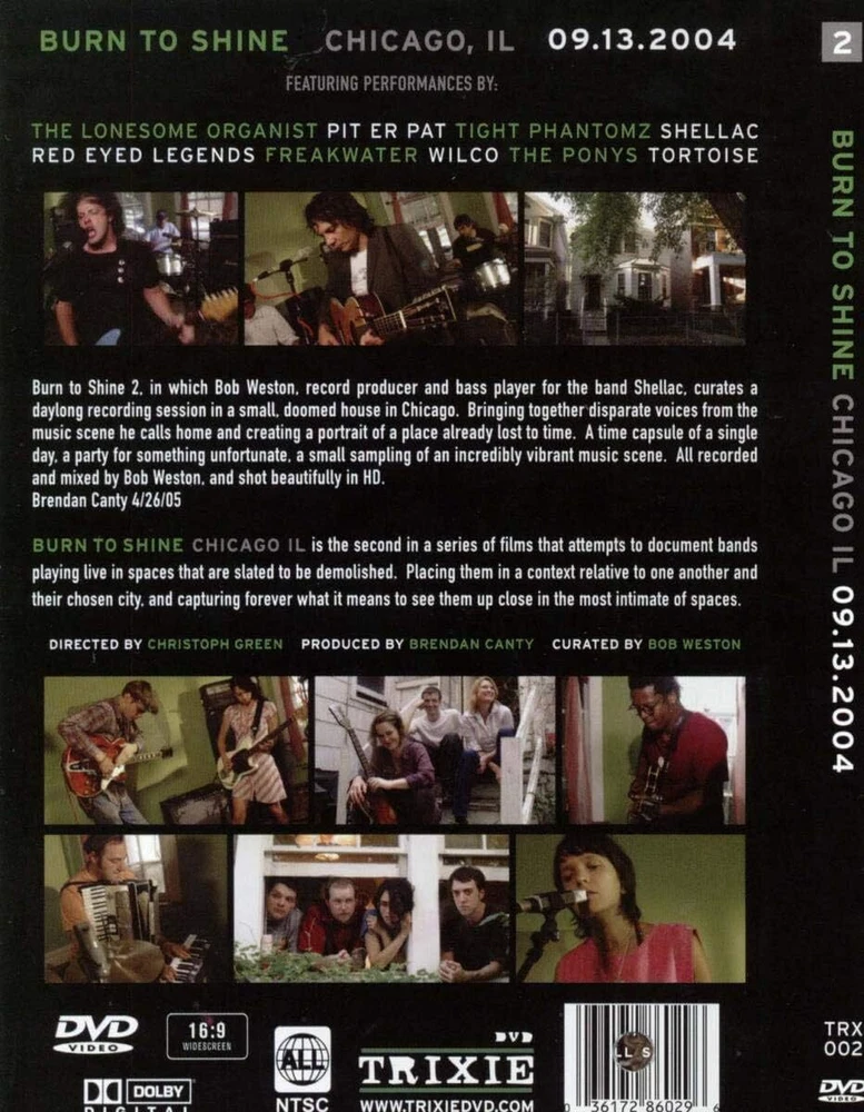 Further Details Title: Various Artists -Burn To Shine 02: Chicago Format: DVD Condition: New Number Of Discs: 1 Actors: BURN TO SHINE 02: CH Audio Language: English Runtime: 45 minutes Region Code: DVD: 2 (Europe, Japan, Middle East...) Studio: Touch & Go Certificate: Unrated Description: This is the second in a series of films from Fugazi's Brendan Canty that attempts to document bands playing live in spaces that are slated to be demolished. Features Wilco, Shellac, Torise, FreakWater, Tight Phantoms, Pit Er Pat, the Ponys, the Lonesome Organist and the Red Eyed Legends. DVDs ARE REGION 1 UNLESS OTHERWISE STATED Missing Information? Please contact us if any details are missing and where possible we will add the information to our listing.