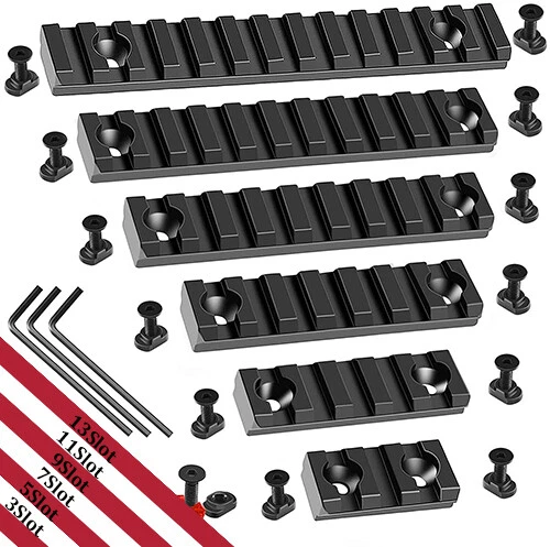 Various Rifle Scope Mounts Set Base Adapter Picatinny Dovetail Rail Slots Mount A: Flat Top 1" Riser Features Raise flat rail line of sight by 1 inch 5.7" in length, sufficient for mounting most optics and lights See-thru design, allowing for using optics and iron sights at the same time Easy fitting and removal with large thumb wheels (no tools needed) Durable all metal construction Lightweight, made of aluminum with black anodized matte finish Dimensions: 5.67"/144mm (length) x 1" (height) x 30mm (width) Weight: 173g (6.1oz) Material: Aluminum, Steel Finish: Black Matte Interface: Picatinny / Weaver Rails Items Included One (1) 1" see-through rail riser I: 11mm to 20mm Mount Base Specifications Color: Black Material: Aluminum Base Length: 2.95 in Rail Length: 3.94 in Weight: 2.82 oz Rail Type: Dovetail (Scope Riser Picatinny Rail Adaptor Base Mount For 3/8" to 7/8" Converter Adaptermm/3/8 inch) About This Item Durable Material: The Picatinny rail mount is made of aircraft-grade aluminum alloy with a black hard coat anodize finish, sturdy & durable. Convert Dovetail to Picatinny Rail: The rail adapter converts Scope Riser Picatinny Rail Adaptor Base Mount For 3/8" to 7/8" Converter Adaptermm dovetail rail to widely used 20mm Picatinny rail for more flexible optics placement. Suitable Mount Base: Rail adapter fit Scope Riser Picatinny Rail Adaptor Base Mount For 3/8" to 7/8" Converter Adaptermm dovetail mounts. Base mount 3/8" to 7/8" converter adapter. Low profile 0.59" riser rail for scope. 9-Slots Long Rail: 20mm top 9-slots picatinny rail has a length extention on the riser basis, allows for the mounting of picatinny or weaver standard scopes, red dots or other accessories. Note: If the top of your dovetail groove is arch-shaped, when installing the product, you need to turn the removal plate 180 degrees and then install it on the rail, so that the product will not be cant. Package Include 1x Picatinny Adapter 1x Allen Key D: Set of 3/5/7/9/11/13 Slot Rail Details: Color - Black Material: aluminum alloy Track type - 21mm Suitable for hand guards and most standard hand guards. Polymer structure. The rail section also has an inclined end to reduce obstacles and eliminate sharp corners and edges. 21mm standard RIS braided guide rail, laser/flashlight/front clip can be added. Element track: 3 slots/5 slots/7 slots/9 slots/11 slots/13 slots 3 slots: length: 35 mm (1.38 inch) width: 21 mm (0.83 inches) 5 slots: length: 55 mm (2.17 inches) width: 21 mm (0.83 inches) 7 slots: Length: 75 mm (2.95 inches) Width: 21 mm (0.83 inches) 9 slots: Length: 100 mm (3.74 inches) Width: 21 mm (0.83 inches) 11 slots: length: 120 mm (4.53 inches) width: 21 mm (0.83 inches) 13 slots: length: 135 mm (5.31 inches) width: 21 mm (0.83 inches) Packing list: One 3-5-7-9-11-13 guide rail Each guide rail is equipped with two screws, two nuts and a wrench B: 45 Degree Offset Rail Mount 5 Slots Mount Lasers, Flashlights, Sights, Red Dots, or other accessories in an offset position with this adapter. Specifications: * Aircraft grade black anodized aluminum * 5 slots * Length: 2.1" E: Sling Swivel Stud Mount Adapter 20mm for Bipod Features: Most Innovative Design to Convert Swivel Stud into 1-Slot Picatinny Rail for Installation Provides Alternative Swivel Stud For Sling Swivel Attachment Easy to install Suitable for 20mm rail Material:Aluminum/Steel Color:Black Package includes 1x Slot Adaptor Kit F: Flat TOP 1/2" Mini Riser Block Mount Specifications Dimensions 0.6" (H) 1.6" (L) 1.3" (W) Weight: 2.3 oz / 63 g Material: Aluminum, Steel Finish: Black matte Interface: 20mm Picatinny / Weaver Rails Items Included 1x 1/2" rail riser / mount G: Scope Ring Mount with Tri Picatinny Rail Specifications Dimensions: 2.5" (height) x 2.25" (width) x 25mm (depth) Weight: 3.2 oz (90g) Color: Black Material: Aluminum, Steel Ring Diameter: 30mm / 1" Fits: 20mm rails Items Included One (1) tri-rail scope/laser mount One (1) 30mm to 1" reducer insert One (1) Allen key H: 20mm Dual Rail Barrel Mount Adapter Solid Aluminum Construction with Matte Black Finish Smart 2 Piece Design for Clamping Rifle Barrel Compatible Barrel Range: Diameter 10-21mm Installs Easily and Wrench is Included Great for Bipod ,Flashlight, Laser Sight Mounting. Adjustable Double Rail 20mm Picatinny Weaver Rail Barrel Mount Adapter for Scope Rifle Shotgun Flashlight Laser w/ Wrench Easily to attach tactical laser sight or flashlight. Fits both Picatinny/Weaver accessories and mounts. Wide clamping range. Fits most rifle barrels. Size: 26 x 35 x 35 mm (1.02" x 1.38" x 1.38" Approx.). Rail Width: 20mm (0.79" Approx.). Z: 1" Scope Rings High Profile for 11mm Dovetail Rail Dovetail Scope Rings for 3/8" or 11mm Dovetail Rails, High Profile Scope Mounts, 2Pieces Double scope ring mount for 11mm dovetail rail, specialized scope mount for Airgun/.22 Rails. Design in Hollowed-out configuration between the ring and the bottom of the base to release heavy duty when clamping your scope. Lightweight: 1.15oz per ring. High profile, 20mm/0.79 in Gap from base of the mount to bottom of rings. ( Item height: 1.97) The ring is for most scopes which are in 1/ 25.4mm scope tube. With only 1 rail clamp screw and 1 scope clamp screw per side, quick and easy to install. Precision and Repeatable Alignment. L: 1" Mag Tube Tri Rail Picatinny Mount 12GA Material: Aluminum Size: 4 * 3.7 * 3.5cm 5 attachment points Suitable for 1 "diameter pipe 3 Picatinny rails on each side 12 No. 12 shotgun cartridge mounted Package Included: 1 rail clip / 1 wrench M: 1" Mag Tube Tri Rail Picatinny Mount 12GA Specifications: Fits 1” Diameter tubes Material: Aluminum Color: Black Overall Height: 1.5” Overall Length: 1.4” Overall Width: 1.5” Weight: 1.3 ounce Package List: 1x Rail Mount Q: 1" Ring Offset Light Mount for MLOK FEATURES This mount is aluminum construction and precise machining. 1 inch diameter for any tube accessories such as flashlight. The ring mount is solid and lightweight perfect for