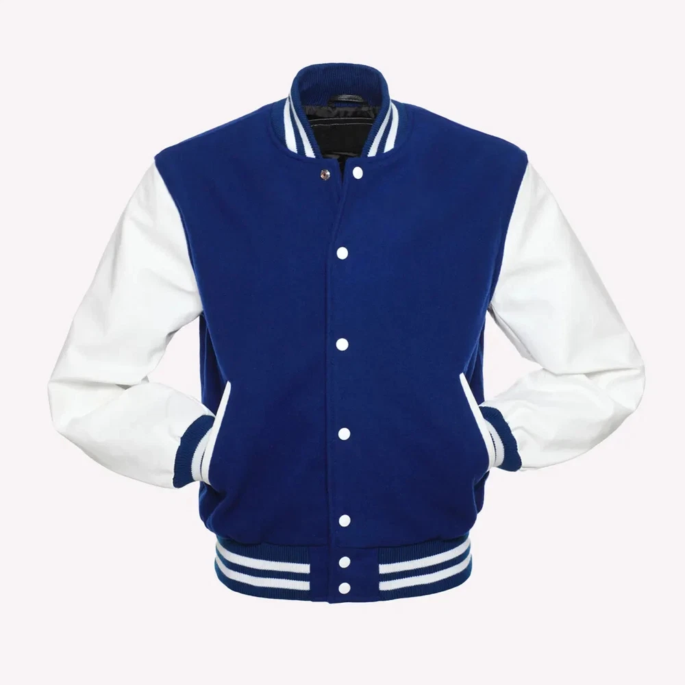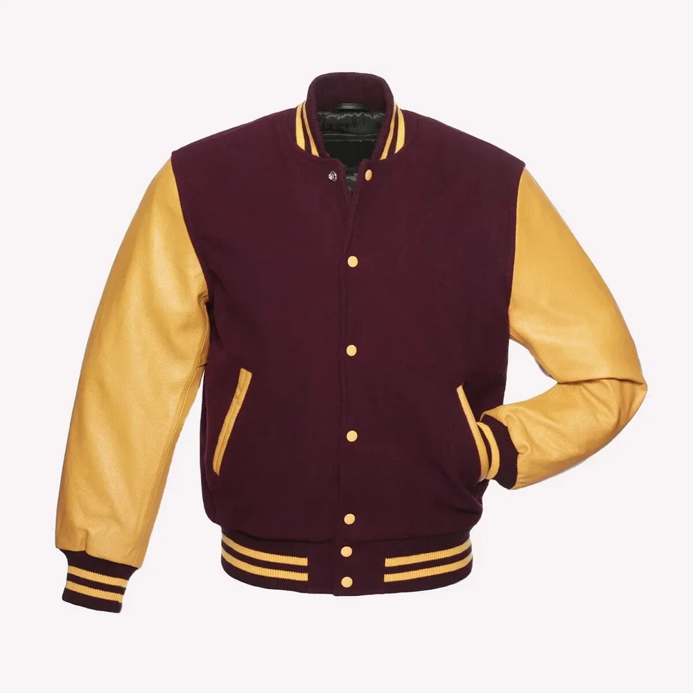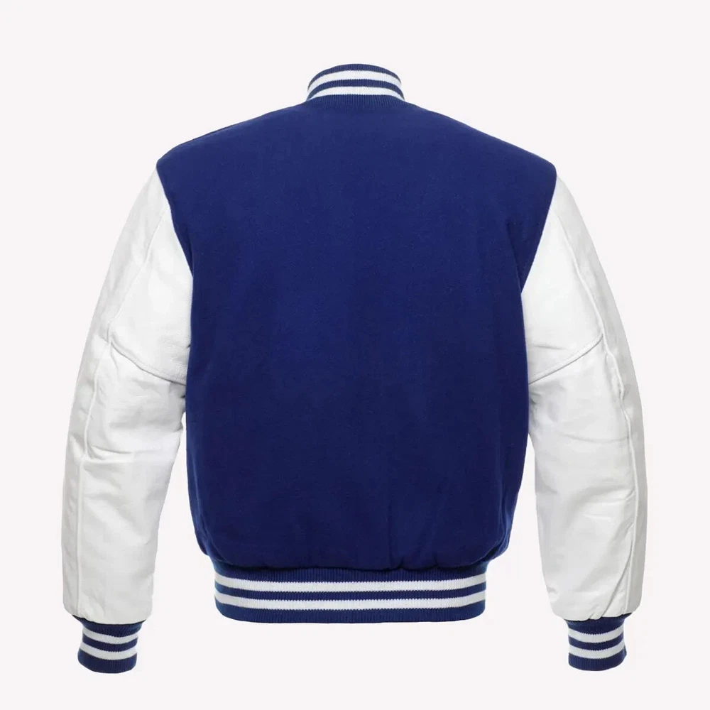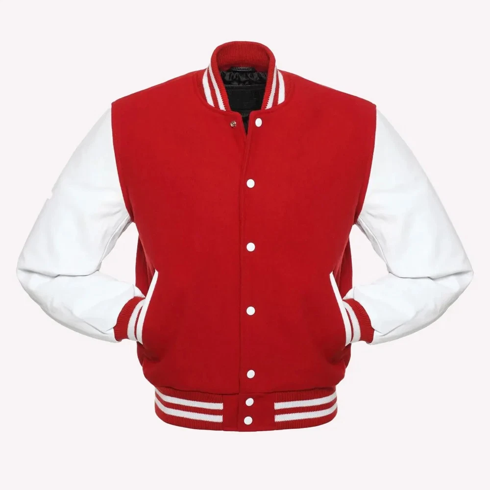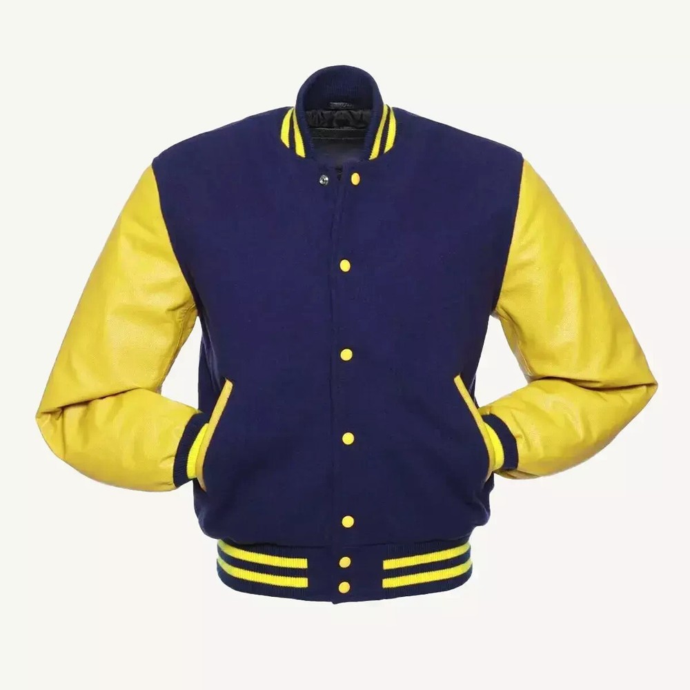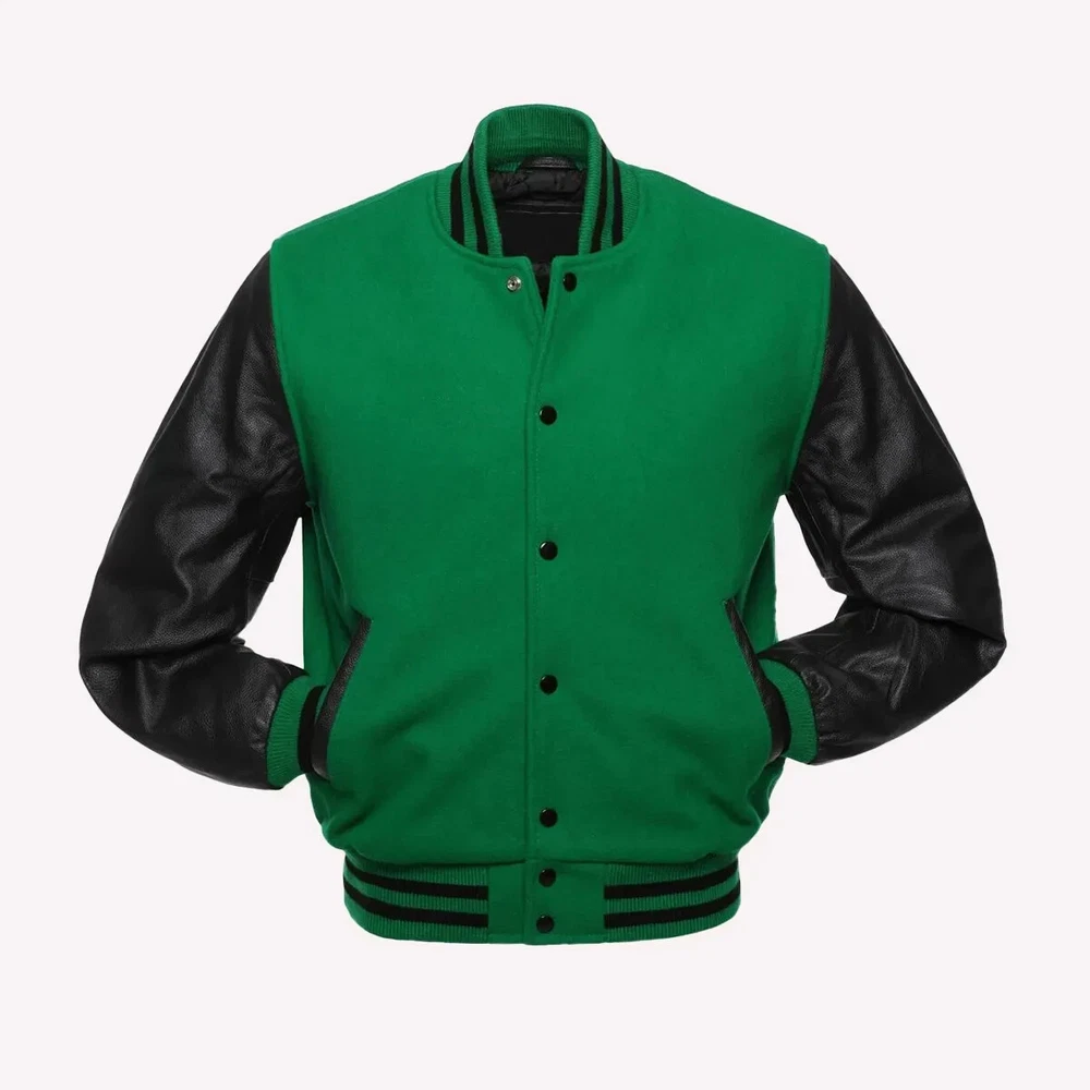 Varsity Letterman Baseball Bomber Jacket Premium Wool with Leather Sleeves. Condition is New with tags. Shipped with FedEx Ground Economy.