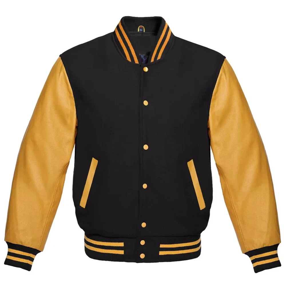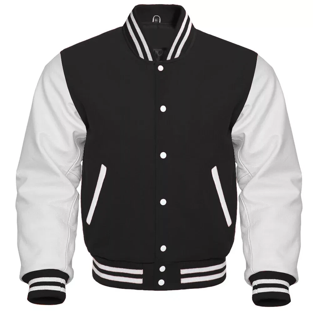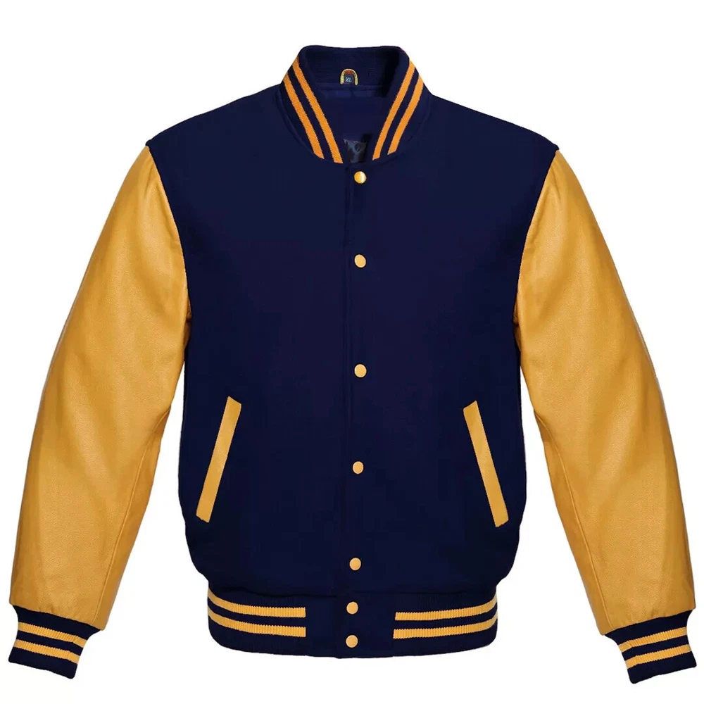 Our varsity jacket offers unmatched quality and style, crafted from the finest materials in the industry. For the body, we use only the softest, most durable wool, complemented by a smooth wool knit on the collar, cuffs, and waistband. The sleeves are made from 100% high-quality, genuine leather for an authentic look and feel. Inside, a premium quilted lining with a wool-trimmed pocket adds extra comfort and functionality. Each jacket is custom-made with attention to detail, ensuring consistent color combinations and trim designs every time. With years of experience in manufacturing authentic baseball, letterman, retro, sports, college, and school jackets, we pride ourselves on producing jackets of exceptional quality. Customization Options: Wide range of sizes, including special sizes Extensive selection of wool colors Various genuine leather color options Endless trim color combinations Choice of buttons and snaps in multiple colors This jacket is available in all sizes, with custom sizing options to ensure the perfect fit! Men Jacket Size Chart MEN JACKET SIZE CHART Size Your Body Chest Size Chest Sleeves Shoulder Jacket Length Bottom XXS 37" | 94cm 45" | 114.3cm 26" | 66.04cm 18.5" | 46.99cm 26" | 66.04cm 33" | 83.82cm XS 39" | 99cm 47" | 119.38cm 26.5" | 67.31cm 19.5" | 49.53cm 26.5" | 67.31cm 34" | 86.36cm S 41" | 104cm 49" | 124.46cm 27" | 68.58cm 20.5" | 52.07cm 27" | 68.58cm 35" | 88.9cm M 43" | 109cm 51" | 129.54cm 27.5" | 69.85cm 21.5" | 54.61cm 27.5" | 69.85cm 36" | 91.44cm L 45" | 114.3cm 53" | 134.5cm 28" | 71.12cm 22.5" | 57.15cm 28" | 71.12cm 37" | 93.98cm XL 47" | 119.38cm 55" | 140cm 28.5" | 72.39cm 23.5" | 59.69cm 28.5" | 72.39cm 38" | 96.52cm 2XL 49" | 124.46cm 57" | 145cm 29" | 73.66cm 24.5" | 62.23cm 29" | 73.66cm 39" | 99.06cm 3XL 51" | 129.54cm 59" | 149.86cm 29.5" | 74.93cm 25.5" | 64.77cm 29.5" | 74.93cm 40" | 101.6cm 4XL 53" | 134.5cm 61" | 154.94cm 30" | 76.2cm 26.5" | 67.31cm 30" | 76.2cm 41" | 104.14cm 5XL 55" | 140cm 63" | 160.02cm 30.5" | 77.47cm 27.5" | 69.85cm 30.5" | 77.47cm 42" | 106.68cm 6XL 57" | 145cm 65" | 165.1cm 31" | 78.74cm 28.5" | 72.39cm 31" | 78.74cm 43" | 109.22cm WOMEN JACKET SIZE CHART Size Chest (Your Body) Chest (Jacket) Sleeves Shoulder Jacket Length XS 27" (68.58 cm) 36" (91.44 cm) 21" (53.34 cm) 16.5" (41.91 cm) 22" (55.88 cm) S 29" (73.66 cm) 38" (96.52 cm) 23" (58.42 cm) 17" (43.18 cm) 23" (58.42 cm) M 31" (78.74 cm) 40" (101.6 cm) 25" (63.5 cm) 17.5" (44.45 cm) 24" (60.96 cm) L 33" (83.82 cm) 42" (106.68 cm) 25.5" (64.77 cm) 18" (45.72 cm) 25" (63.5 cm) XL 35" (88.9 cm) 44" (111.76 cm) 26" (66.04 cm) 18.5" (46.99 cm) 25.5" (64.77 cm) 2XL 37" (93.98 cm) 46" (116.84 cm) 26.5" (67.31 cm) 19" (48.26 cm) 26" (66.04 cm)