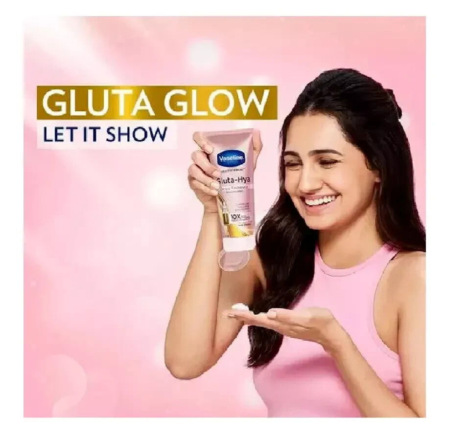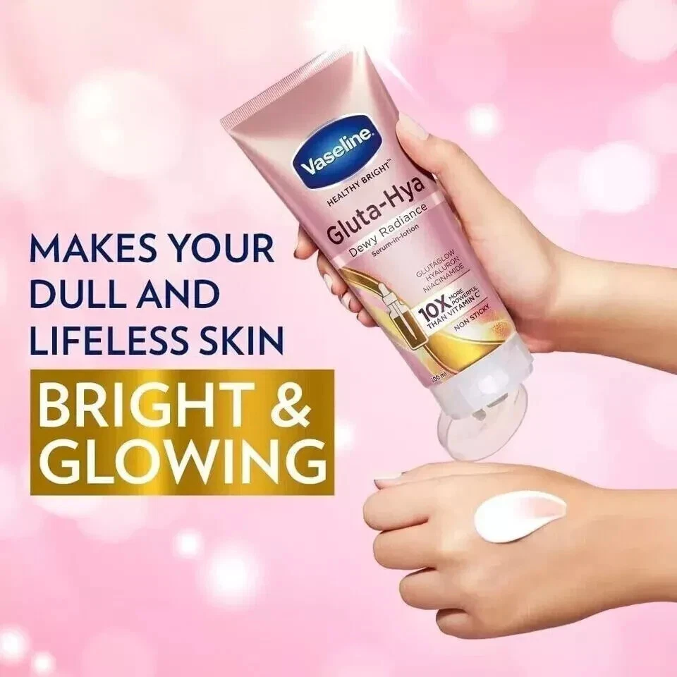 Vaseline Gluta-Hya Dewy Radiance Serum-In-Lotion (Pack of 2) Pack Size:200ml Description Vaseline has been passionate about healing skin and ensuring happy skin, every day for Everybody. We believe 'Healthy Skin is Beautiful Skin', that helps you keep up with the demands of life. Vaseline's Gluta-Hya is a revolutionary product range from the house of Vaseline with advanced brightening ingredients & has a super-light sensory. The unique sensory of the serum-burst lotion is lighter and fresher than a lotion, silkier and smoother than a gel. Gluta-Hya gives you Visibly Brighter Skin from the First Use. It is boosted with Gluta Glow technology which is 10x more powerful than Vitamin C. Boost your skin's moisture for dewy skin with Hyaluron. 10X Active Niacinamide that Boosts Skin's Natural Radiance. Non-sticky formula & Easy to absorb. Spreads easily all over the body. Bring back your Glow with Vaseline's Gluta-Hya Range Benefits Make your skin dull and lifeless skin bright & glowing It helps Reduce Dark Spots; Makes Dull Skin Bright & Radiant It is non-sticky and easy to absorb.