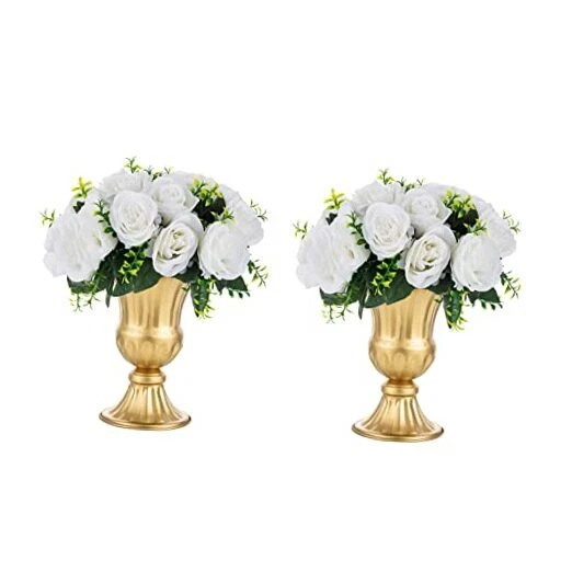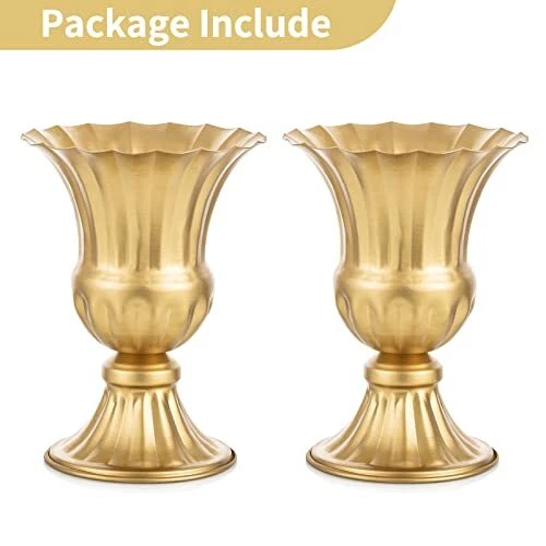 Return Policy Fast Delivery Trusted seller Gold Vases for Centerpieces Wedding - 2 Pcs 9in Height Metal Urn Planter Elegant Wedding Centerpieces for Tables - Trumpet Vase for Weddings Party Decoration Centerpiece Table Decorations Product Description PACKAGE INCLUDES: 2× 23cm/9 inches height wedding centerpieces vase. The base diameter is 13.7cm/5.4", and the inner opening diameter is 16.8cm/6.6". Flowers are not included. MULTIPURPOSE: Match with flowers and artificial flowers, perfect for wedding table centerpieces, party decorations, and event decorations. Add shine to dull wedding decor, birthday center pieces, and dessert table decorations. EASY TO ASSEMBLE: For safe transportation and easy storage, each flower stand needs to be assembled. Perfect for wedding and party decoration. Show different styles of romance. ADVANTAGE: Our metal compote vases are made of high-quality metal which is anti-rust. Its hollow horn holder goes great together with seasonal fresh flowers or artificial flowers, garlands, and bouquets. FRIENDLY REMINDER: Due to the light and screen difference, the bowl's color may be slightly different from the pictures. It is recommended that you put some stones in the flower pot so that it can be more stable. Shipping Returns Payment Shipping Shipping is FREE to all addresses other than APO/PO boxes in the lower 48 states. All our stock ships from US-based warehouses. Shipped via USPS or UPS (depending on location and package weight) Unless stated otherwise, all orders will ship within 24-72 hours of your payment being processed. Check our feedback to see the great reviews of FAST shipping we offer. Returns Seller does not accept returns Payment We currently accept payment via eBay managed payments only. Once payment is cleared, we will dispatch your shipment within 1-3 business days. Please refer to the "Shipping" tab for more information regarding shipping speed to your destination.