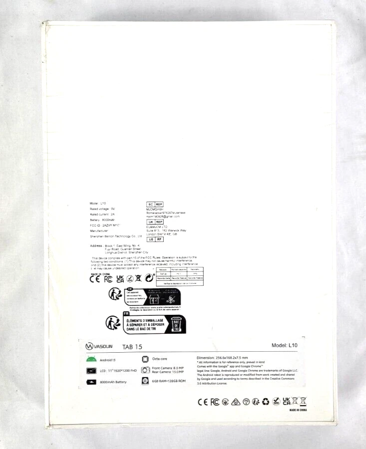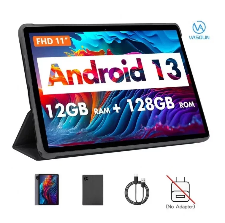 VASOUN TAB15 11 Inch Android 13 Tablet (T606 8-Core 12NM UFS2.1 1.6Ghz/6GB RAM/128GB Rom Supports 1TB SD Expansion/ 1920*1200 FHD Incell Screen/4G SIMLTE/5G WIFI 802.11ac/BT 5.0/8000mah/Type-C/8mp+13mp Camera/ With Free Leather Case(No Adapter)