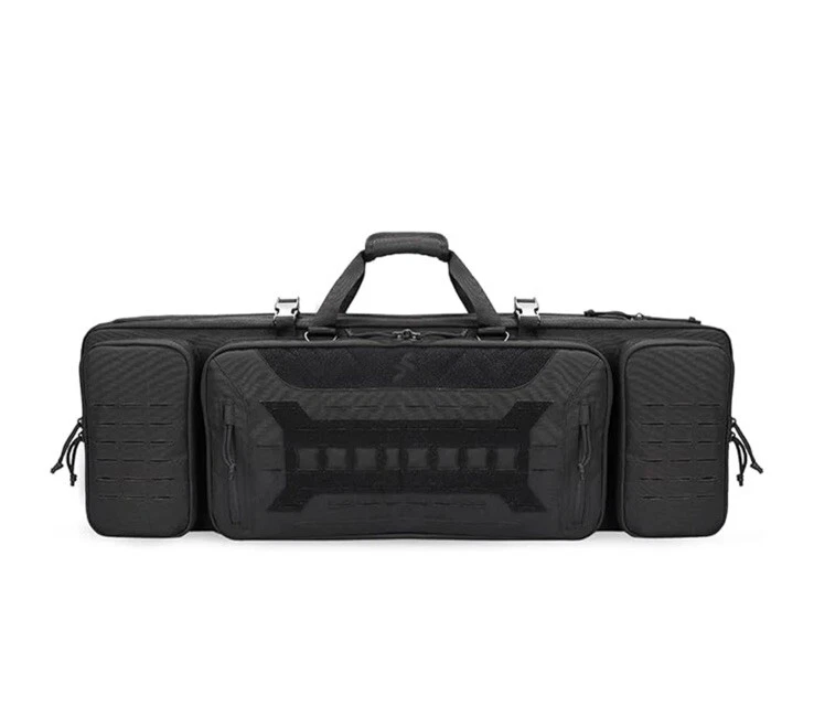 Durable Construction Material: Constructed by heavy-duty 600D nylon fabric exterior & interior. Padded on all side for increased protection. Removable protective pad keep your valuable firearm from wear also can be used as shooting mat. Safe & Spacious: Dual lockable zippers keep your firearms safe, 2 locks included in the package. Holds 2 rifles and 2 pistols, ample storage in the front for your range accessories. Molle compatible webbing for customization. Professional Rifle Bag: Rugged ballistic pack cloth construction, extra 2 outside accessory pouches fit all your need. Portable removable backpack w/storage pouches. Double stitching construction workmanship solid. Hold 2 Rifle Refined Design & Functional: Double rifle case with more refined design, multiple compartments inside and out provide storage for just about anything you’ll want to carry. Fully customizable web and loop platform can carry all your other tactical accessories.