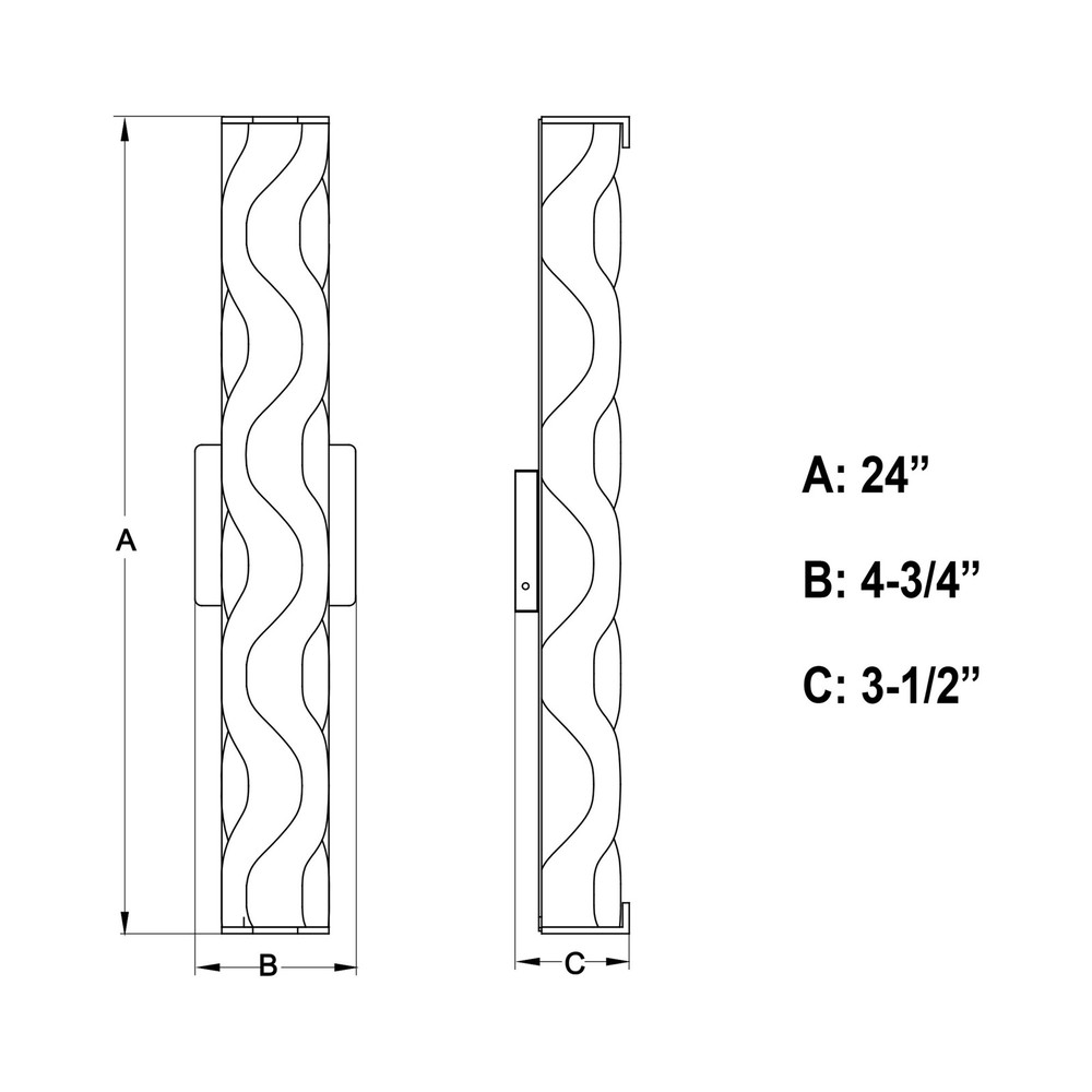 Model: W0359 Bulb Shape Code: Integrated LED Voltage: 120 V MPN: W0359 Finish: Chrome Pattern: Refer to Item Photo Brand: Vaxcel Lighting Number of Bulbs: 1 Item Height: 4.75 Material: Glass Item Width: 24 UPC: 884656747669 gtin13: 884656747669 Country/Region of Manufacture: China Type: Vanity Lighting Item Length: Unspecified Light Color: 3000K Features: Vaxcel Lighting W0359 Marseille Single Light 24" Collection: Marseille Color: Chrome