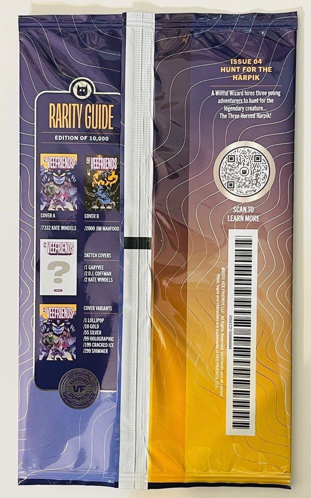 The VeeFriends Comic Book Issue #4 - CRACKED ICE is an exclusive limited edition comic book published by Veefriends. This single issue variant, featuring artwork by Kate Windel and written by Jim Mahfood, is limited to only 199 copies. Set in the modern age of US comics, this comic book is a valuable collectible for fans and collectors alike, showcasing a unique character and story within the VeeFriends series.