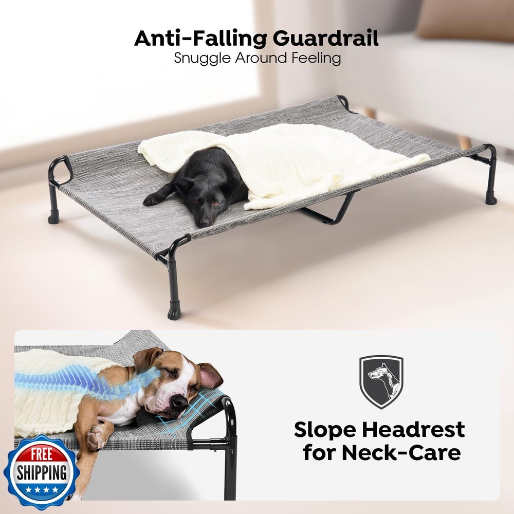 Veehoo Elevated Cooling Dog Bed for Large Breeds with Guardrail Outdoor Use