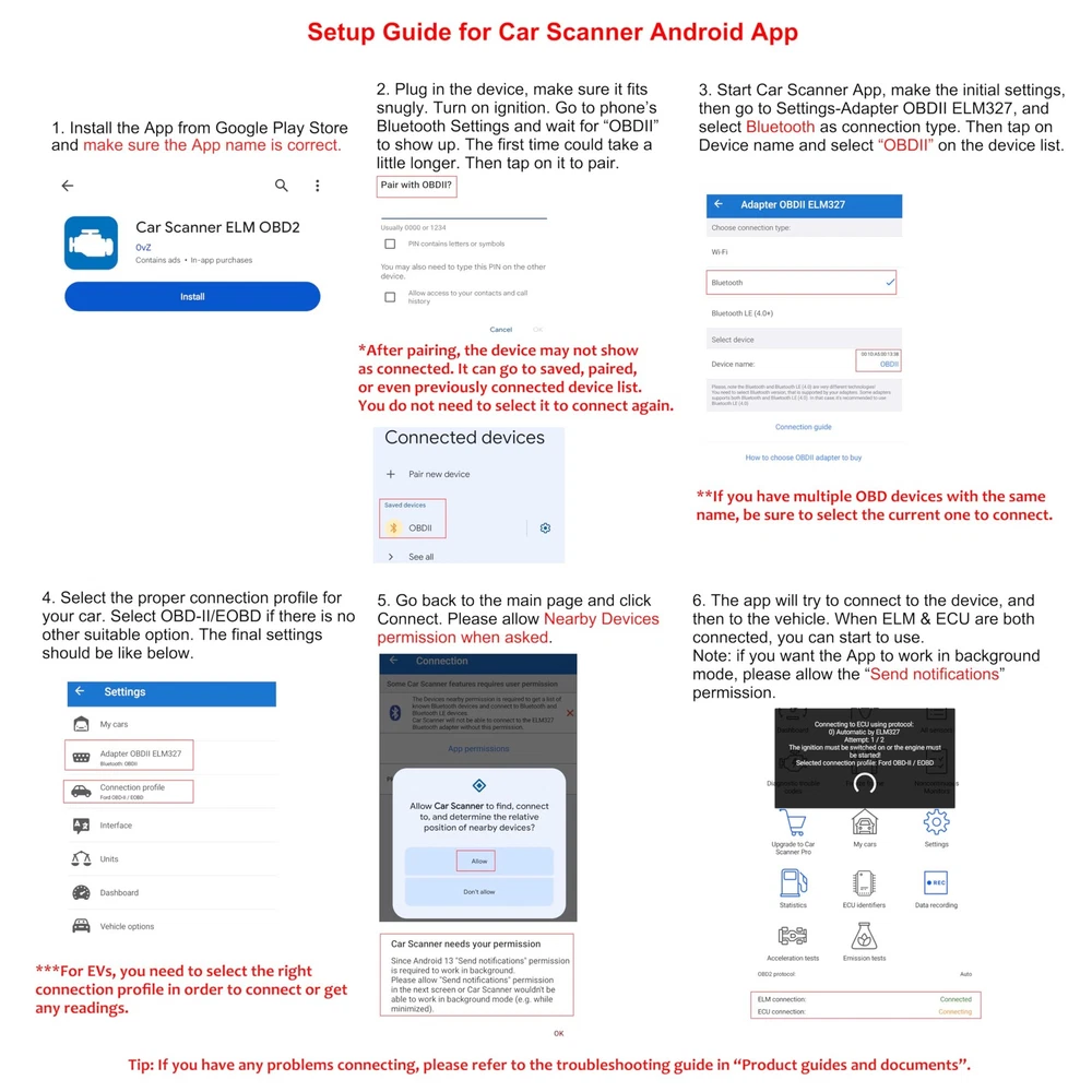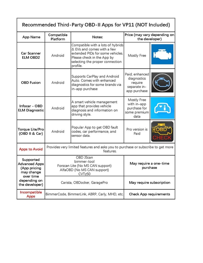 Veepeak Mini Bluetooth OBD2 Scanner for 3.0 Android ONLY, Blue Description Features: ⚠️ IMPORTANT: for Android phones/tablets only! It is NOT compatible with iPhone or iPad. For iOS devices, please choose the Bluetooth LE version — OBDCheck BLE. Android car radios/head units are also not supported. GENERIC OBD-II FUNCTIONS – read & clear trouble codes for check engine light (CEL or MIL), view freeze frame data, I/M readiness, and live sensor data to help monitor vehicle health and diagnose check engine problems. LIVE SENSOR DATA – Get vehicle speed, RPM, engine coolant temp, throttle position, O2 readings, fuel trim, mass air flow, and more on your Android device. You can monitor fuel economy and create your own dashboard. VEHICLE COVERAGE – Compatible with most cars and light trucks model year since 1996 in the US and 1998 in Canada for generic OBD-II functions. EV support varies by model—check the Car Scanner app profile or contact us before purchase. APP COMPATIBILITY – Compatible with popular Android apps like Car Scanner ELM OBD2, Torque, OBD Fusion, Dr. Prius, CVTz50; NOT compatible with BimmerCode, BimmerLink, ABRP, and other Apps that require specialized hardware. NOTES: Advanced diagnostics (ABS, SRS, TPMS, transmission, etc.) and special features including oil light reset, injector coding, EPB reset, relearning, adaptation and service performing are NOT supported. TIPS: Make sure to get the proper App to ensure proper functionality. Plug in the device with a tight fit to ensure successful connection. Product Details: Handling We will ship all orders within 3 business day of payment. Delivery We Do Not Ship Outside of the Continental US. Return Policy All items qualify for returns within 30 days of receipt. Buyer is responsible for return shipping on any item that is not damaged. Feedback We take our reputation seriously, we buy and sell online, so we understand the value of trust. If you are unsatisfied with your order, please contact us and we will work with you to resolve it to your satisfaction.
