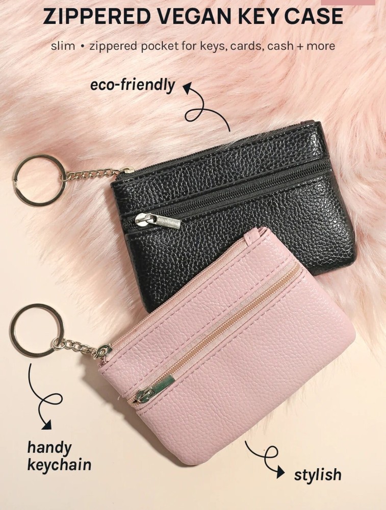 Style: Wristlet Material: Vegan Leather Pattern: Solid Vintage: No Type: Coin Wallet Department: Women Handmade: No Brand: Unbranded Fabric Type: Faux Leather Features: Credit Card Accents: Zipper, Keychain Personalize: No Size: One Size Color: Black