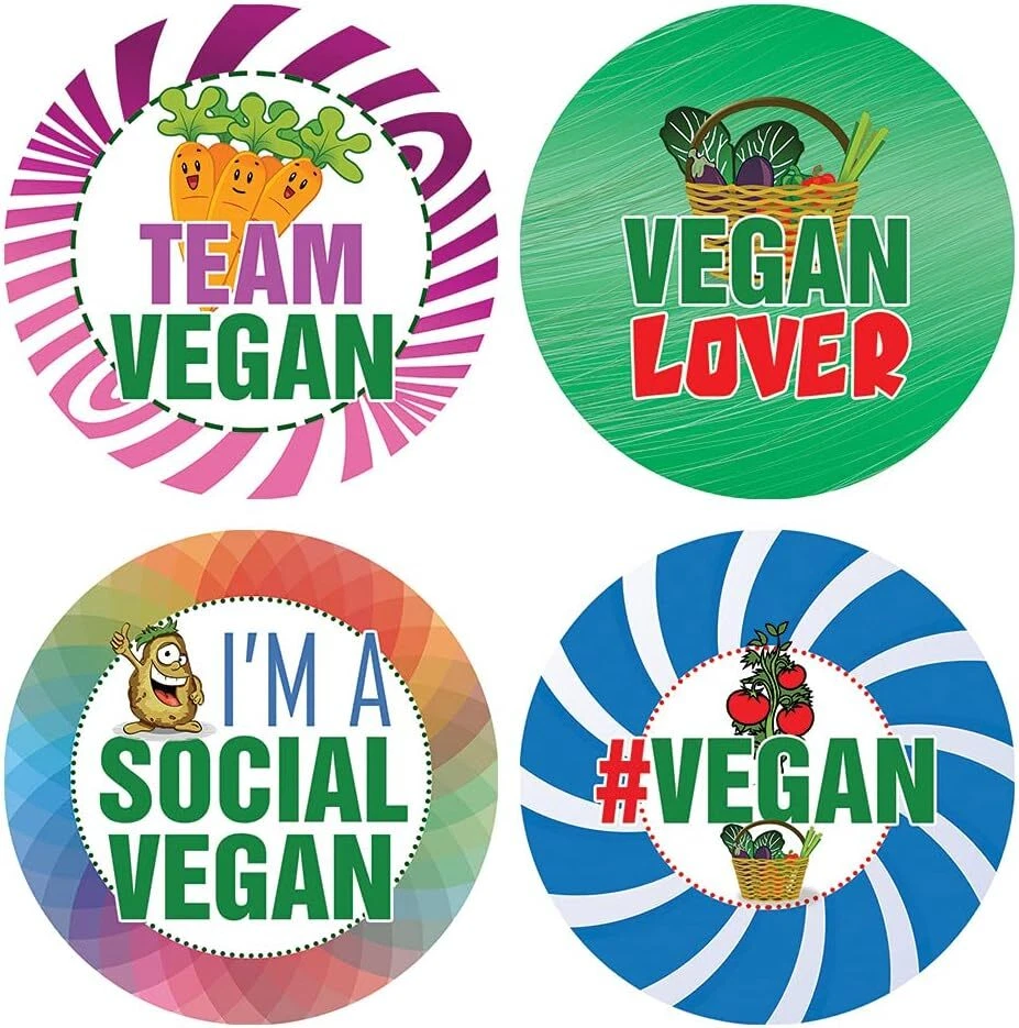 16 UNIQUE DESIGNS INSPIRING STICKERS FOR YOUR DIY PERSONALIZED DECORATIONS - Vegan Stickers (5-Sheets x 16 Designs). These colorful and uniquely inspiring round shaped stickers are the best tool for DIY decoration and personalization of your belongings. GREAT STOCKING STUFFERS, SCHOOL CORPORATE TEACHING SUPPLEMENTARY MATERIALS, AND INCENTIVE GIFTS - Great rewards giveaways for Men & Women Adults, Boys, Girls, Teens, Children. A perfect design to give during guidance sessions, classroom activities, school giveaways, birthdays, anniversaries, family day, and any other special occasions. MADE WITH DURABLE AND WATERPROOF MATERIALS - There is a lamination or coating to make the stickers high water resistant, and WILL NOT fade from the water. The stickers can stick it anywhere you like, and it sticks there and lasts a long time. A COLORFUL AND DECOR STICKER DECAL - Each sheet with 16 individual round stickers. There are 5 Sheets, with a total of 80 pieces of stickers. STICKER SIZE: 1.5 INCHES IN DIAMETER Vegan Stickers (5 Sets X 16 Designs) COLORFUL AND COLLECTION OF TEXT STICKERS • Well designed. • Very encouraging. • Self-adhesive. Vegan Stickers (5 Sets X 16 Designs) are super fun to collect; you can't have just one! That's why you will find a selection of stickers right here. Each package comes with different stickers in a variety of designs. Stick them here, stick them there, stick them everywhere! Everyone will love these self-adhesive stickers. These colorful stickers are perfect for any adults and these come with very inspiring messages and bright pictures. A fun, inexpensive way to add a decorative, notes, and stationery. Delight yourself with uplifting messages designs that are very encouraging. Vegan Stickers (5 Sets X 16 Designs) perfect for giveaways, behavior incentives, prizes! These stickers are acid-free, nontoxic, and safe for use on photos. This product comes with a 60 days money back guarantee. You can return them to us for a full refund.