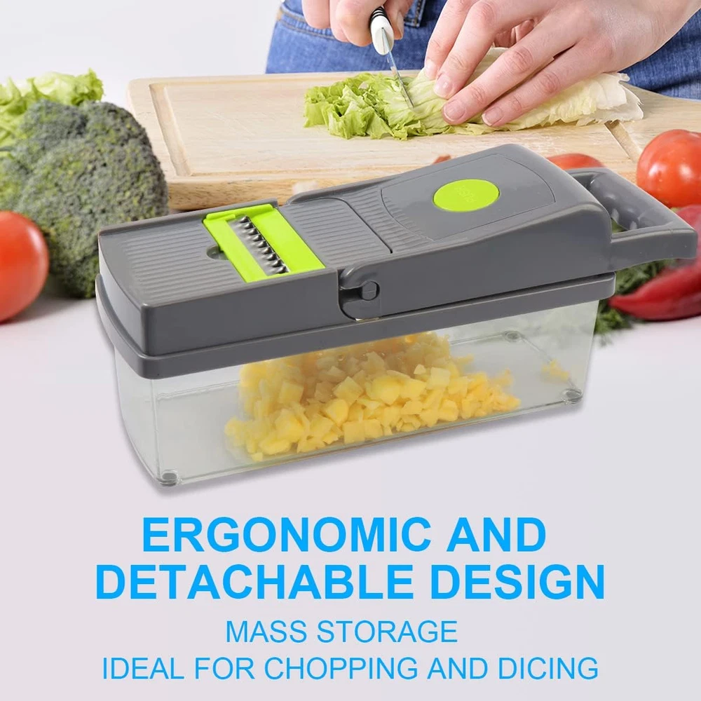 Store New Arrivals Add to Favorite View Feedback Contact Vegetable Chopper Dicer Onion Chopper, 14 in 1 Food Chopper Fruits Cutter with 8 Stainless Steel Blades, Adjustable Slicer, Vegetable Cutter with Drain Rack Storage Container, Kitchen Gadget Description Item Dimensions L x W x H 13.19"L x 3.94"W x 4.92"H Color Black Material Plastic Material Type Plastic Blade Shape Round Operation Mode Manual Recommended Uses For Product Egg, Cheese, Vegetable Additional Features Interchangeable Blades Special Feature Interchangeable Blades Product Dimensions 13.19"L x 3.94"W x 4.92"H Product Care Instructions Hand Wash Only Blade Material Stainless Steel Superior Quality: 100% brand new,the onion vegetable chopper dicer is made of high quality BPA-free food grade ABS plastic material,durable and last-long.For better using performance,we adopt the ultra-sharp 420-grade hardened stainless steel blades for chopping/dicing hard vegetables.Heavy-duty stainless steel blades are sharp enough to cut most kinds of vegetables and fruits. 8 Interchangeable Blades: Humanized design, this vegetable food chopper have 8 types of interchangeable blades,which can give you numerous ways to slicing,shredding, grating. Food can also be cut into different thickness of silk and slices.There is an egg white separator include,to easily separate egg whites from yolks. So functional vegetable chopper gift for cooking lover. Kindly Remind + Easy to Clean: No putting blades randomly, after rinsing and drying, please collect them into the container and keep them away from children. Easy to disassemble about the blades for thorough and convenient cleaning, just use the claw and brush to scrape and sweep off residue on the press plate and the blades. Time Saver: Multifunctional vegetable veggie chopper,which can help shorten your preparation time with traditional blades chopping/dicing/slicing tomatoes, peppers, carrots, tomatoes, beets, cucumber, onions ,garlic,saving your time on home works.A perfect gift for your wife,mother and cooking lover. Product Description Necessities for your kitchen. ________________ The OuYteu vegetable chopper is a versatile all-in-one kitchen tool, very suitable for preparing salads, salsa, onions, garlic, etc. It provides efficient and convenient results and has an impressive 1.5-liter capacity. Its space-saving design eliminates the need for bulky equipment in a small kitchen, and its collection tray minimizes clutter. When you cut carrots, cucumbers, pumpkins, zucchini and ginger and other spices, the transparent body allows you to monitor the progress. Because it does not require electricity, the OuYteu vegetable cutter can be used anywhere. Safe and Healthy The vegetable chopper onion cutting and dicing machine is made of high-quality BPA-free food-grade ABS plastic material, which is safe, healthy and durable. The blade is made of 420-grade hardened stainless steel, which can help you cut most vegetables and fruits easily and efficiently. The Best Features On the Market This all-in-one kitchen gadget can meet all your needs. 8 easily replaceable blades, including peeler and egg white separator, as well as cleaning tools, faster cooking and preparation, making your work in the kitchen easier and more enjoyable. Storage Friendly Design We have carefully built this vegetable chopper so that it can be easily placed under the cabinet and countertop. Thanks to its compact, lightweight size and design, you can even take it with you, making it the perfect companion for a family picnic or Sunday brunch gathering. With Drain Basket The drain basket design can filter the excess vegetable water into the container of the shredder, saving space, not messy, and very convenient to use. Handguard Equipment We have equipped the vegetable chopper with a hand guard to make you safer and more efficient when chopping vegetables and fruits. Easy To Disassemble and Secure. Simply replace blades and lock them in place. As easy as it gets and safe at the same time. Go from slicing to dicing in no time! What you will get? 1* Vegetable Chopper 2* Vegetable cutter 4* Grinder blades 2* Slicer blades 1* Egg separator 1* Water Filter Basket 1* Cleaning scraper 1* Hand protector Safe Material: The vegetable cutter uses food-grade ABS, does not contain BPA, is non-toxic and tasteless. All blades are made of food grade 420 stainless steel. The Vegetable Chopper and Dicing Machine are Combined in One: 8 replaceable blades allow you to chop, chop, dice and slice vegetables. Meet all your vegetable cutting needs. Save Time for Preparing Vegetables: complete all the work at once, saving half of the time. If you want to cut onions, you can easily do it in less than a minute. Easy to Clean: The blade can be completely disassembled for easy cleaning. It is equipped with a small plastic comb to pull the food residue out of the push rod. Easy to Organize: When not in use, all items can be stored in the container. Save space, you don't have to worry about the counter becoming mixed up. Please pay attention: ________________ Please press the lid firmly and quickly, otherwise some hard vegetables may stick to the dicing blade. Be careful with very sharp blades and keep them away from your children. Please do not let the blade go deep into the water for a long time, and keep it dry after cleaning. ABOUT US We offer the best prices around on high quality products. Our E-store includes media such as books, movies, music and games while offering electronics, toys, sporting apparel, clothing, tools, general home, garden items and more. SHIPPING We are always working hard to ensure your package arrives as soon as possible. Please understand that some factors like weather, high postal traffic, and the performance of shipping companies are outside of our control. We offer free shipping to the lower 48 states and ship within 2 business days of payment, usually sooner. We do not accept P.O. Boxes. Please provide a physical address. For shipping 