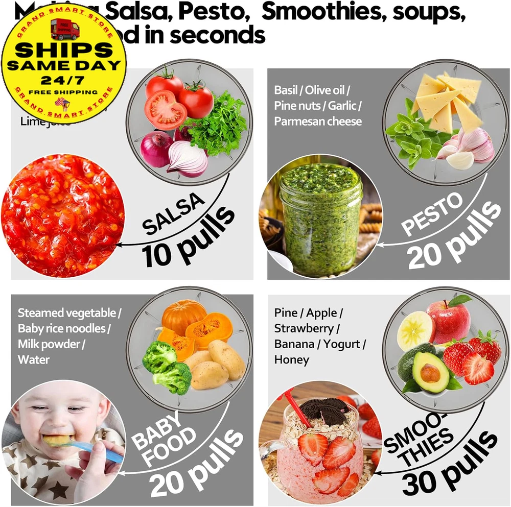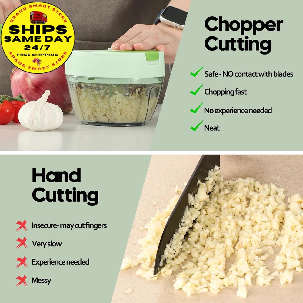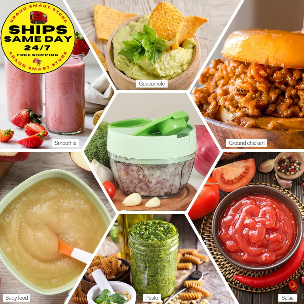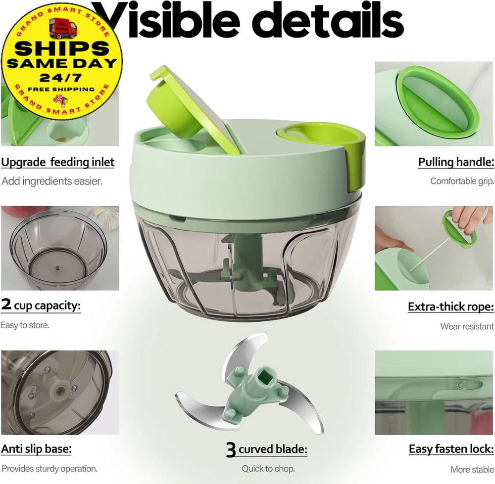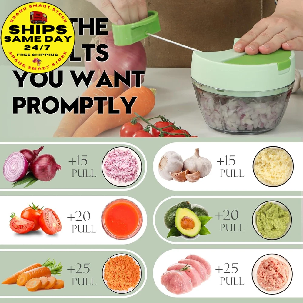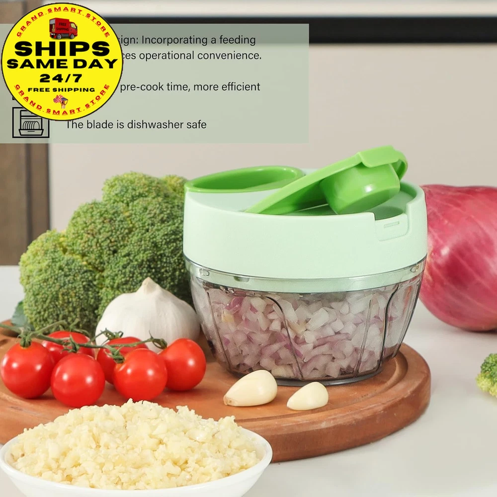 Store New Arrivals Add to Favorite View Feedback Contact Vegetable Chopper Manual Food Processor, Kitchen Mini Portable Hand Pull String Garlic Mincer Onion Chopper Cutter with Feeding Inlet for Salsa, Pesto, Guacamole, Puree Etc. 400 Ml, Green Description Item model number A066-1G Color Green Product Dimensions 4.8"L x 4.8"W x 3.5"H Material Plastic Country of Origin China Item Weight 9.1 ounces Recommended Uses For Product Indoor / Outdoor Specific Uses For Product Indoor, Outdoor Size 400ml Convenience feeding inlet: The feature of the new veggie chopper enables you to conveniently incorporate the ingredients while chopping, eliminating the need to repeatedly open the lid. Chopped onions without tears or garlic without odors Versatile manual chopper: It effortlessly handles a wide range of foods, including tomato, onion, garlic, ginger, herb, lean meat, chicken, fruit and more. It is perfect for creating delicious salsa, guacamole, pesto sauce, hummus Achieve food sizes by adjusting the number of string pulls: ten times for coarse chopping, fifteen times for medium and twenty or more for a smooth puree. The sharp blades facilitate effortless chopping: The three razor-blades are strategically positioned in different directions and heights to ensure uniform chopping of all ingredients. The curved blade design maximizes the contact area with the ingredients Effortless Operation: No electrical or chopping skills required, this manual chopper operates quietly, safely and keeps your kitchen tidy. The blades are dishwasher safe. Its compact size requires minimal space, perfect for kitchen, RV, camping and more Product Description Convenience feeding inlet: Effortlessly incorporate additional ingredients without any disruption, streamlining your meal preparation process 360°rotating blades: The 3 sharp blades are strategically positioned in different directions and heights to ensure uniform chopping. The curved design maximizes the contact area with the ingredients. Durable and strong pull string: The pull string features an automatic retraction function and an ergonomically designed handle, providing a more effortless, convenient, and comfortable method for chopping food. Anti-skid rubber base: The rubberized base ensures the stability of the onion chopper during use, preventing the kitchen chopper from slipping and ensuring its safety. 3 available sizes to choose from: 400 ml, 650 ml, and 900 ml to cater to various requirements. Add more possibilities to your daily dish Click to choose other products from Ourokhome Add to Cart Add to Cart Add to Cart Add to Cart Add to Cart Customer Reviews 4.5 out of 5 stars 20,139 4.5 out of 5 stars 940 4.8 out of 5 stars 2,858 4.6 out of 5 stars 4,569 4.7 out of 5 stars 518 Price $28.99 $ 28 . 99 $26.99 $ 26 . 99 $9.99 $ 9 . 99 $9.99 $ 9 . 99 $12.99 $ 12 . 99 Blade Quantity 3 blades / 2 bench blades 5 Heat Resistant Blades / Blade Material 420 stainless steel / 430 stainless steel Nylon and Glass Fiber / Easy Clean Blades dishwasher safe Hand washing Dishwasher safe Dishwasher safe Hand washing Easy to Use ✔ ✔ ✔ ✔ ✔ Exquisite Packaging ✔ ✔ ✔ ✔ ✔ ABOUT US We offer the best prices on high-quality products. Our online store includes everything related to Christmas, as well as gifts, children's toys, home and garden products, and more. We are confident that you will love our products and invite you to visit our store. SHIPPING Fast shipping is very important for us. Our standard shipping service in the United States is FREE on all products. Your order will be shipped within 1-2 business days after full payment is received. Your order will be delivered within 2-4 business days after the handling time. We only ship to the confirmed PayPal address. We reserve the right to cancel any order for reasons beyond our control, such as an incorrect address, and we will refund you the full amount. Please ensure that you provide us with your correct address to guarantee successful delivery of your order. RETURNS We offer a 30-Day Return Policy. You have the option of a full refund or an exchange of the item. Returns are not available for items shipped outside of the United States of America. PAYMENT We accept PayPal. CONTACT US This page content is yet to come Please ad us to your favorite seller and visit again later Thank You CUSTOMER SATISFACTION For any questions, please use the eBay contact system. We will respond to you within a maximum of 24 hours. We have products that suit all tastes, so please visit our eBay store to check out other items for sale! Thank you for shopping at our store WE ACCEPT Copyright © 2021 AutoDS. | All Rights Reserved