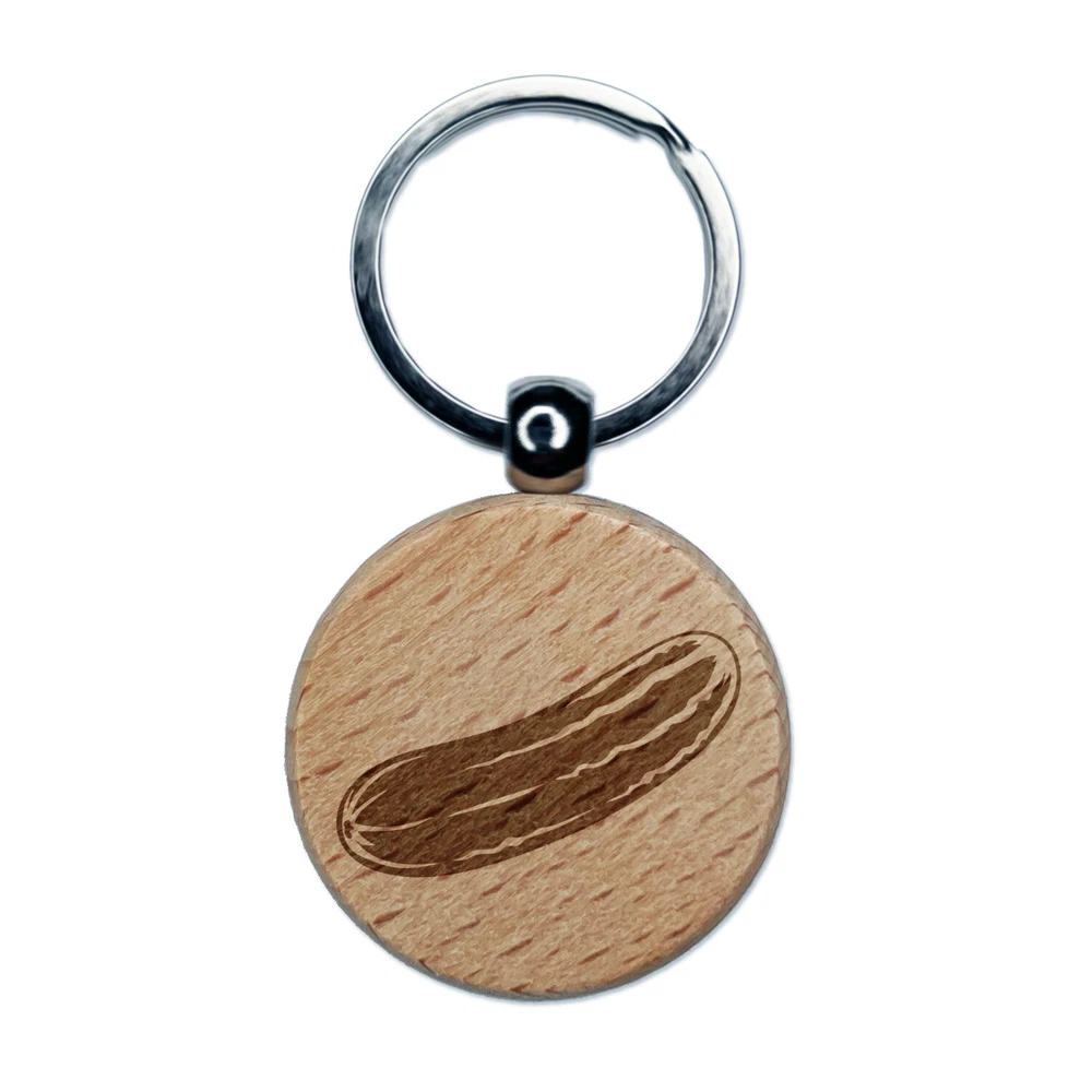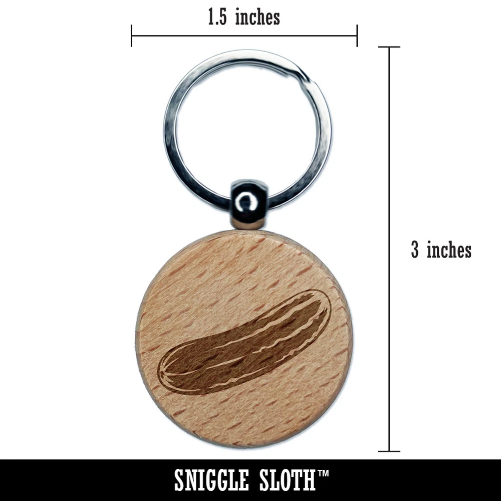 Vegetable Cucumber Engraved Wood Round Keychain Tag Charm