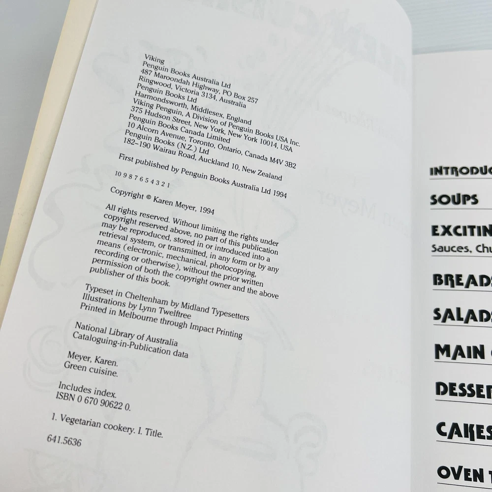 Green Cuisines Cookbook by Karen Meyer Paperback Book Vegetarian Recipes Item posted within two business days of payment clearing via Australia Post. Australian seller - smoke free - pet free - working mum Adding new book listings daily to my store. My books are sent in strong Australia Post, Australian made, water resistant padded mailers that are recyclable through the REDcycle program and can be recycled at any major shopping centre. Pre-owned, see photos for condition and read the description.