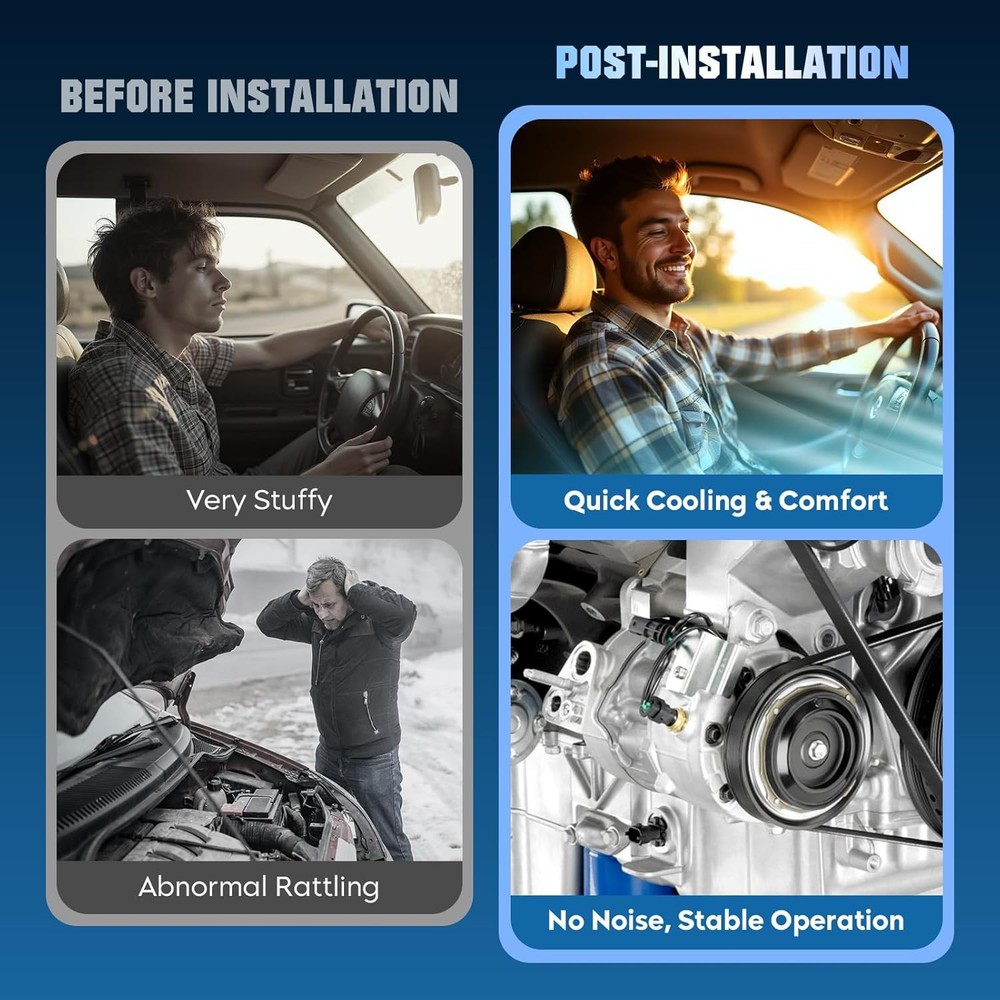 👍 Compatible with: New A/C compressor for Ford: 2003-2005 Excursion 6.0L, for 1997-2001 F-150 4.6L/5.4L, for 1997-2001 F-250 4.6L,for 1997-1999 F-250 5.4L, for 1999-2007 F-250 Super Duty 6.8L, for 1999-2001 F-350 5.4L, for 1999-2007 F-350 Super Duty 6.8L, for Lobo 4.6L 1997-2001, for Lobo 5.4L 1999-2001, for Lincoln Blackwood 5.4L 2002 👍 Replaces for Part Numbers: 1520694, 1035112, 1135112, 1235112, 618152, 4718121, 4718144, 4L3Z19703AB, 4L3Z19703AC, 5C3Z19V703AA, 6L3Z19712BA, F7LZ19V703RA, 57152, 58152, 2041028, 6511461, 7511461, 7512140, YCC163, YCC179, YCC214, 2010918AM, 143028C, 143028NC, 143028NEW, 2604, 2604N, 10000535, 000101, 010022, 010473, 10343121, 2010918, TEM273184, TEM253184, 253184, 273184, 57152 👍 Careful manufacturing: Air conditioning compressor adopts excellent materials and advanced technology, which greatly improves its performance and durability and prolongs its use time. 👍 Cautions: Before installing the air conditioning compressor, clean your car's cooling system pipes and check that the fan and condenser are working properly so as not to affect the use of new parts. 👍Compressor Specifications: Oil Type: PAG 100;Oil Prefilled: 160±10ML; Pulley Grooves 6; Pulley Diameter (mm) 127