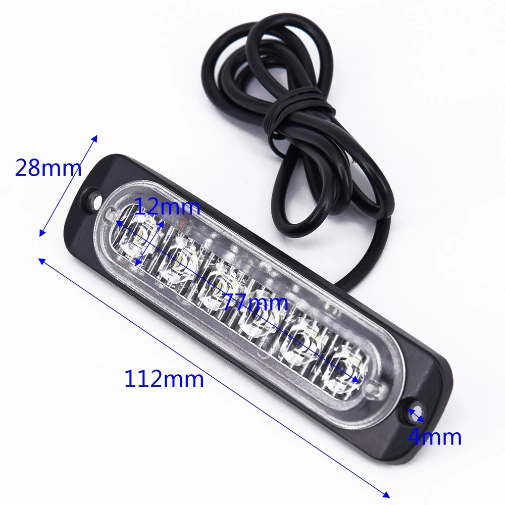 Vehicle Flash Light Mounting Accessories Headlight Running Fog Accessories Part DESCRIPTION Features: *Car 6LED for DRL Daytime Running Light Flash Light *Can be used as fog light and headlight *Super bright white light, giving your car an extra glow *Easy to install *Low power consumption, energy saving and *Long lifespan, to use *Suitable for DC 12V-24V Car, SUV, Van, Truck, for ATV, UTV * brand new and high quality Specifications: *Housing Material: Diecast Aluminum *Item Color: Black Housing + Clear Lens (As Pictures Show) *Light Color: White (As Pictures Show) *LED Number: 6SMD *Voltage: DC 12V-24V *Current: 333mA *Power: 18W *Dimension: 112*28mm (Approx.) *Wires Connection: Black wire for Negative, Red wire for Positive and Yellow wire connection Positive change flashing mode Package Contents: 1*Flash Light 1 Set of Mounting Accessories Note: The real color of the item may be slightly different from the pictures shown on website caused by many factors such as brightness of your monitor and light brightness. POLICES Shipping Payment WARRANTY We only ship to confirmed Paypal addresses. Please comfirm that your paypal address is in line with your shipping address. Please kindly note that the c ombined shipping is not provided because the shipping fee is calculated by weight. Also, the each additional item means exactly the the same color and size. It takes about 7 -15 working days to US; about 10-30 working days to other countries. Transit time may be a little delayed because of the bad weather and customs inspection . If you do not receive your item within 30 working days since payment finished, please contact us immediately for further assistance. We accept payment via Paypal only. Payment must be made within 5 days, Non-payment may result in an UPI (Unpaid Item), eBay will automatically close your account if you accumulate 4 UPI's total. Import cutoms duties or taxes which are not included in item price, if any, are on buyer's responsibility. You can check with your local customs office for further information prior to bidding/buying. We strive for 100% customer satisfaction! Positive Feedback is very important to us. If you have any questions, p lease feel free to contact us via "Ask seller a question" . We will reply your email within 24 working hours.