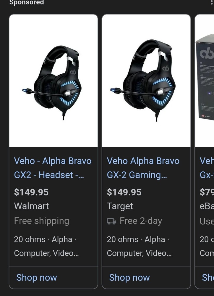 CLEARANCE SALE. SEND BEST OFFER Brand new. Clearing out my storage and hence the low price. Sold at Walmart and Target for 149.95 The Veho Alpha Bravo GX-2 Gaming Headset in black is a USB-connected over-ear headset designed for video game enthusiasts. The brand, Veho, is known for producing high-quality audio products. The GX-2 model provides immersive sound and clear communication with its built-in microphone. Its ear-cup design ensures comfort during long gaming sessions.