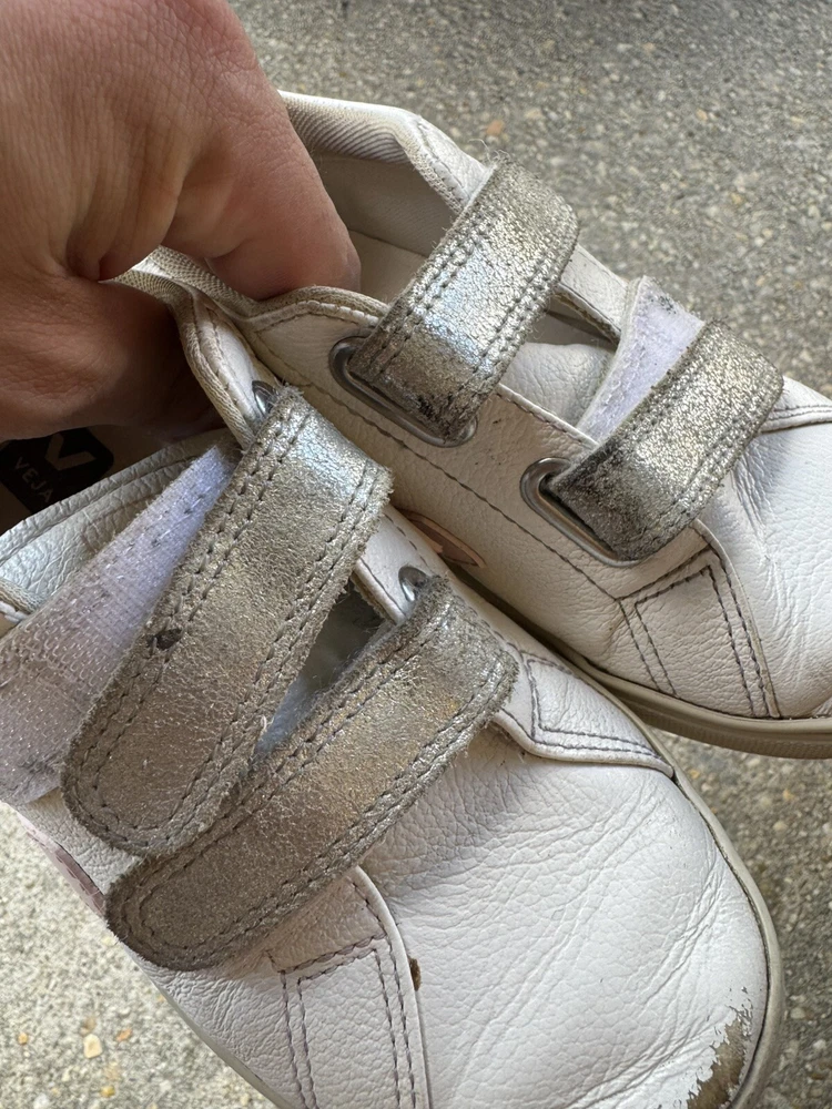 These sneakers are a great find! The touch-strap design makes them super easy for little feet to slip on and off. Even though they're pre-owned, they're still in solid shape—just a few minor signs of wear, but nothing that affects comfort or style. Perfect for active kids who need durable, fuss-free shoes. The photos show exactly what to expect, so no surprises. Love the eco-friendly Veja quality! Would definitely recommend.
