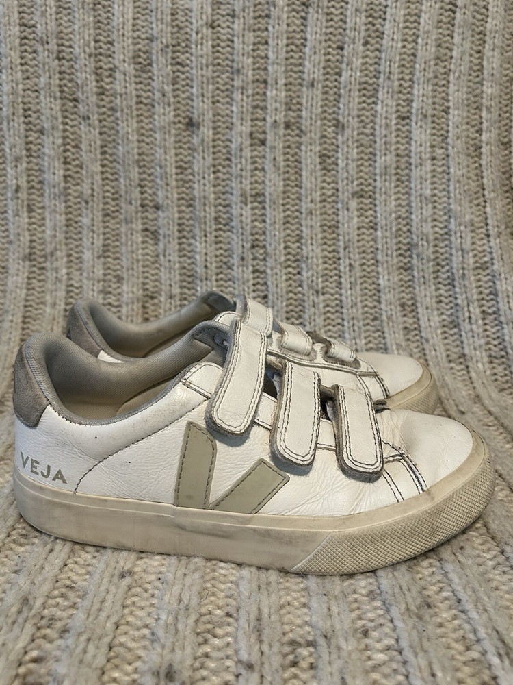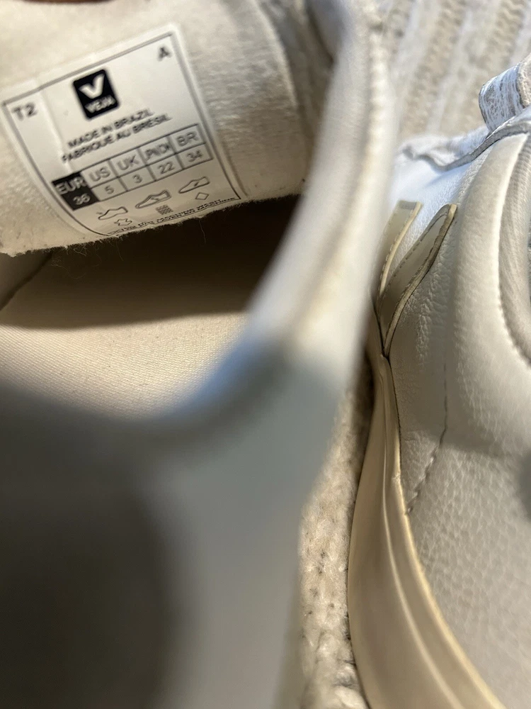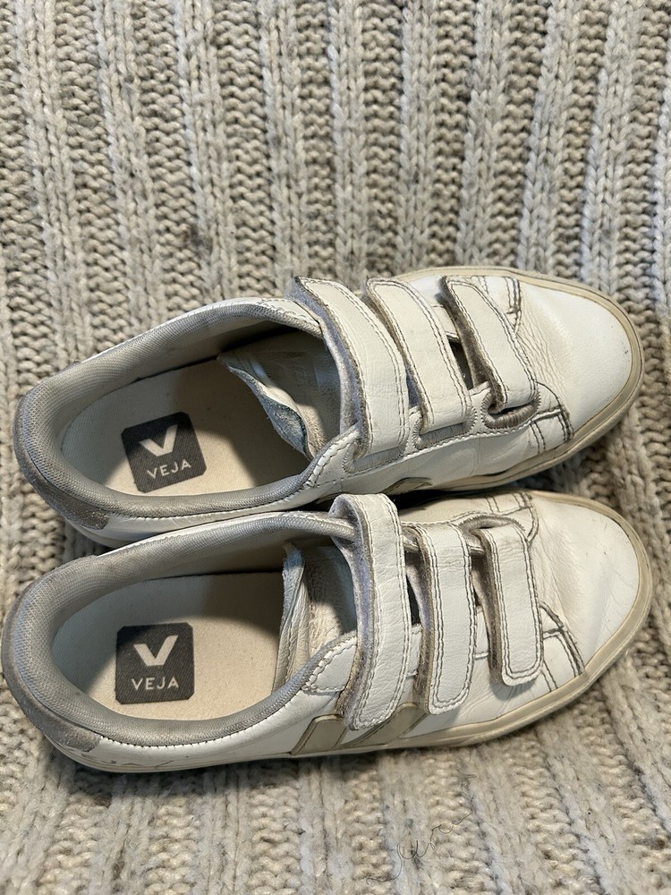 Veja T2 White Leather Sneakers Logo Triple Strap Womens Size 5. Refer to pictures for color, pattern and condition details!! Let me know if you have any questions. Priced to sell! Thanks so much for stopping by.
