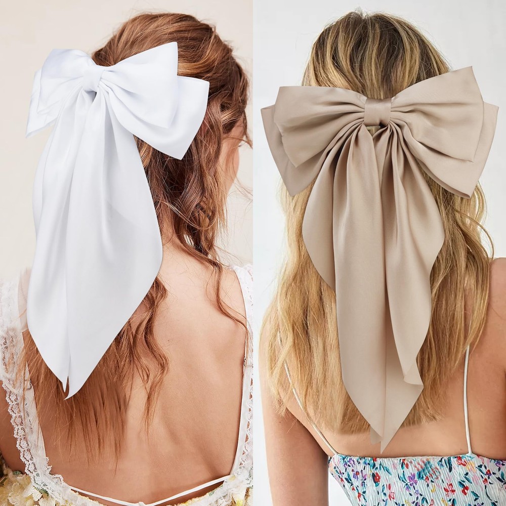 Velscrun 3Pcs Women's Hair Accessories Gifts: White, Black, and Khaki Overs Features: 3 Colors: 3 different colors make them easy to match your outfit, nice and strong, grip hair really well, good for keeping your hair tidy and making you look elegant Amazing Material:Hair bows barrettes made from metal french clips and feature decorative silky satin fabric with long tail, soft and durable, cute bow and long tail, It can be matched with any sweet girls's costume. Not only can it be used as a hair clip, but also as a DIY accessories Great Size Big Bow Hair Clips: 8*13.5 inch big hair clips, This are big and open pretty wide, Whether it is long and thick curly hair, or have waist length fine to medium hair, It holds your hair perfectly and easily Wide Application: Ideal for Bridal, Wedding, Bridesmaids, Mother of the Bride, Parties, Proms, Formal Affairs, Baptism days, Holidays, Homecoming, Special Occasions, Valentine's Day, Mother's Day or Anniversary Gifts; Great for Everyday and Business Wear Daily Hair Bow: 3 Pcs variety colors big bow hair clips to choose to match your everyday's outfit. They are durable and elastic, easy to fit thick hair and thin hair. if there was any problem, please feel free to send us a message Features: 3 Colors: 3 different colors make them easy to match your outfit, nice and strong, grip hair really well, good for keeping your hair tidy and making you look elegant Amazing Material:Hair bows barrettes made from metal french clips and feature decorative silky satin fabric with long tail, soft and durable, cute bow and long tail, It can be matched with any sweet girls's costume. Not only can it be uséd as a hair clip, but also as a DIY accessories Great Size Big Bow Hair Clips: 8*13.5 inch big hair clips, This are big and open pretty wide, Whether it is long and thick curly hair, or have waist length fine to medium hair, It holds your hair perfectly and easily Wide Application: Ideal for Bridal, Wedding, Bridesmaids, Mother of the Bride, Parties, Proms, Formal Affairs, Baptism days, Holidays, Homecoming, Special Occasions, Valentine's Day, Mother's Day or Anniversary Gifts; Great for Everyday and Business Wear Daily Hair Bow: 3 Pcs variety colors big bow hair clips to choose to match your everyday's outfit. They are durable and elastic, easy to fit thick hair and thin hair. if there was any problem, please feel free to send us a message eBay integration by