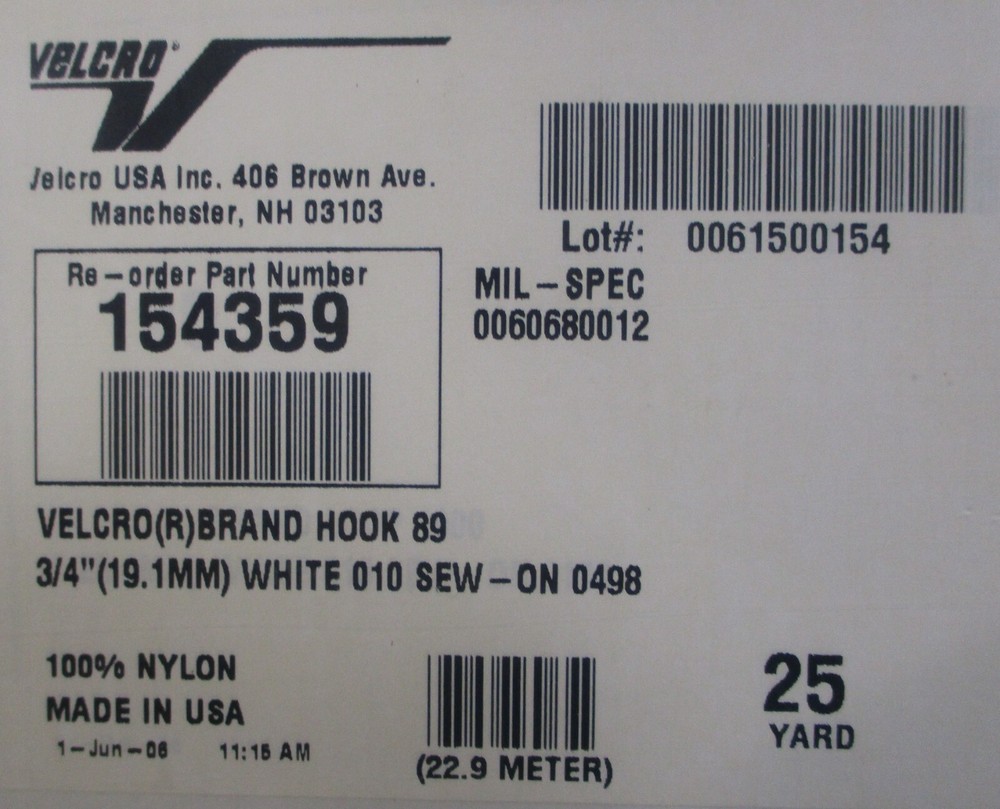 Nylon Fastener Tape For sale is a Velcro USA 400-1680-103 Nylon Fastener Tape, Hook 3/4" x 900"(25yd) White 010 Sew - ON 0498, 154359. Item appears new and in excellent condition. Will come as shown and with what is pictured. May show minor imperfections from shelf wear but nothing that will impact performance. Width: 3/4" Length: 900"(25yd) Thank you for looking and please let us know if you have any questions. eTech Surplus Rochester, NY Shipping: Charged according to location. Please note that eBay charges sales tax, we do not. We at eTech Surplus strive to honestly and accurately describe each item we sell. Please feel free to contact us with any questions. International Buyers - Please Note: Import duties, taxes and charges are not included in the item price or shipping cost. These charges are the buyer's responsibility. Please check with your country's customs office to determine what these additional costs will be prior to bidding or buying.