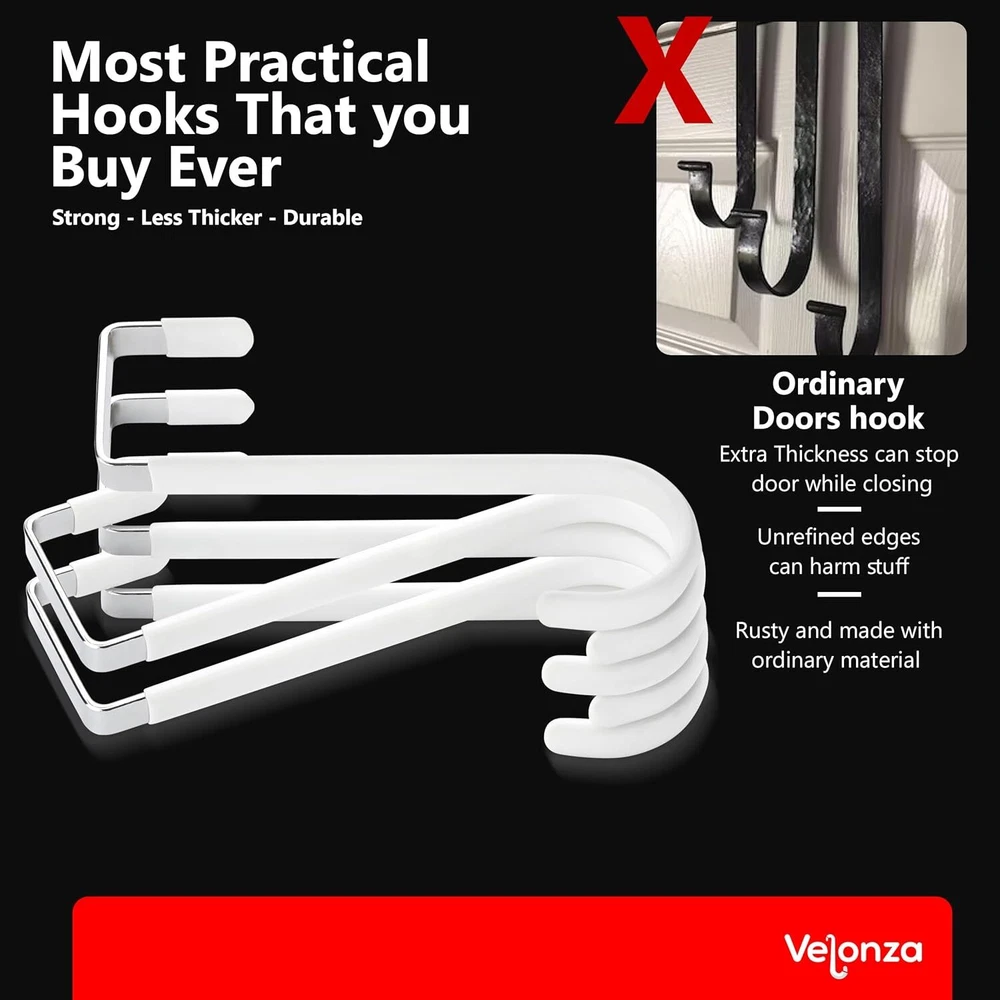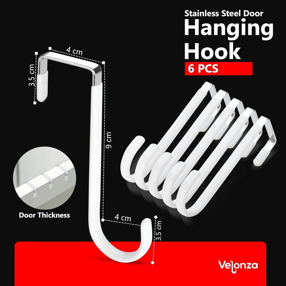 6 Pack Over The Door Hooks Wreath Hanger - White Rubber Coated Door Hanger Hooks - Scratch-Resistant - Ideal for Living Room, Bedroom, Kitchen - Perfect for Towels, Hats, Coats, Bags and clothes About this item Heavy Duty Door Hanger: Made of high-quality durable metal with a strong load-bearing capacity, these over the door hanger can hold up to 20 pounds, ensuring they can securely hold your items without bending or breaking Rubber Coated Hooks: Door hooks are coated with soft rubber, which are not only to protects your doors from scratches but also provides a comfortable grip for hanging items. Over the door hooks for hanging can be used in bedrooms, bathrooms, living rooms, and kitchens Versatile Usage: Over the door hook can be used to hang a variety of items, such as clothes, towels, hats, coats, bags, and more. They are perfect for organizing your space and keeping your items neat and tidy Easy to Install: With a simple installation process, Over door hooks can be attached with any door in seconds without using any tools, convenient and hassle-free solution for organizing your home. Space Saving: Over door hanger take up minimal space, making them ideal for use in small spaces such as apartments, dorm rooms, and RVs. They can help you maximize your storage space and keep your home clutter-free. Multi-Purpose: Whether you need extra hanging space in your bedroom, bathroom, or kitchen, these hooks are the perfect solution. Ideal for Christmas Wreath Hanger.