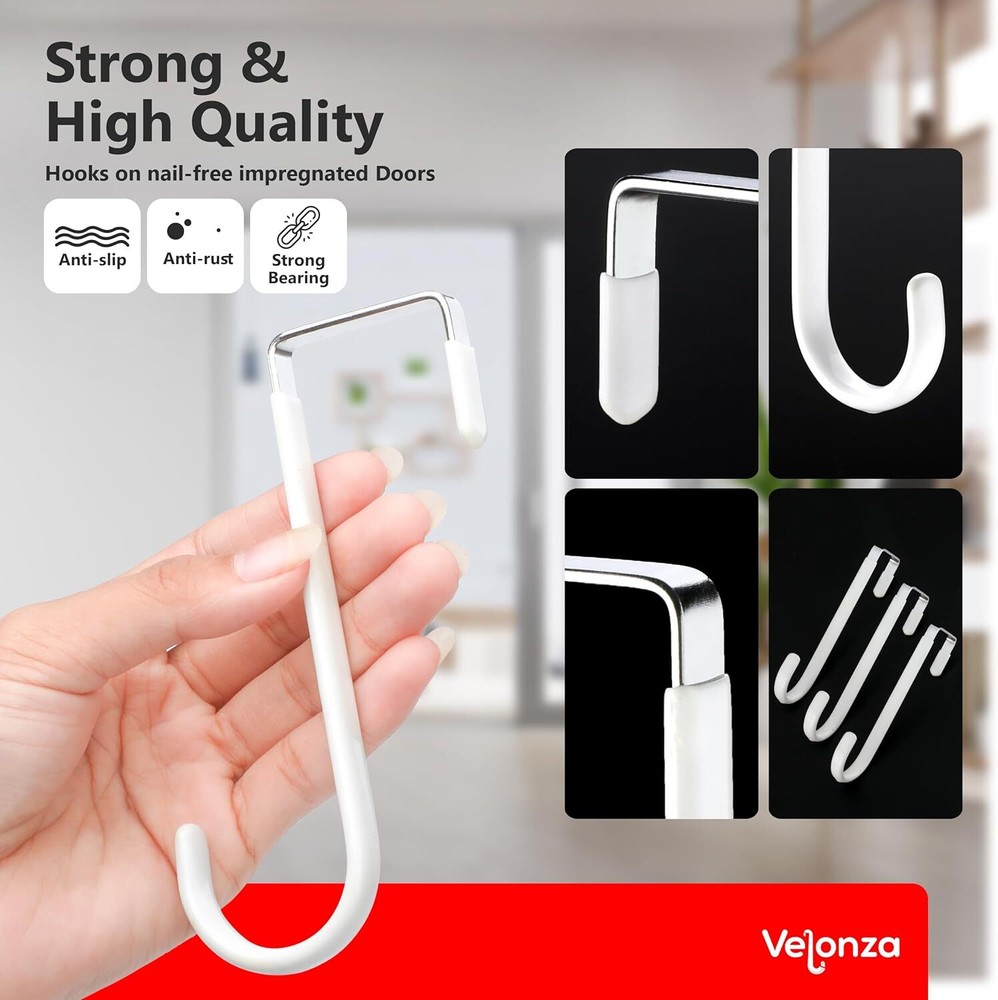 These over-the-door hooks are a game-changer! The sturdy metal construction holds up to 20 lbs, while the rubber coating keeps doors scratch-free. Perfect for towels, coats, or bags—they stay put without slipping. Love how versatile they are for any room, and the clean white finish blends seamlessly. No more cluttered floors or damaged doors! Highly recommend for organized, space-saving storage.