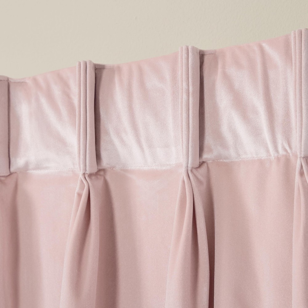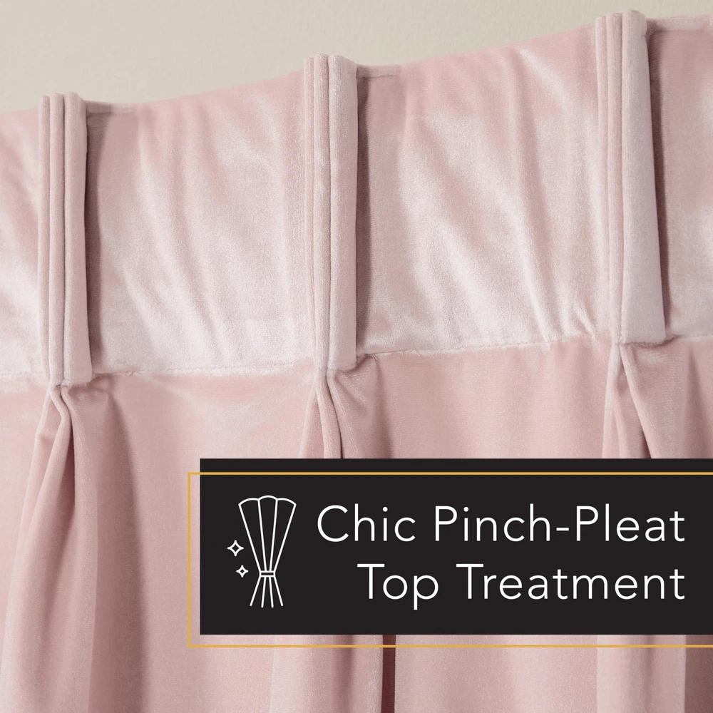 Velour Solid Heavyweight Plush Velvet Indoor Curtain Panel Set Includes two (2) curtain panels, each measuring 27"W x 84"L. Light Filtering Opacity provides privacy while allowing some natural light to shine through 100% Polyester, with plush velvet feel Triple pinch pleat top treatment with hidden back tabs for hanging