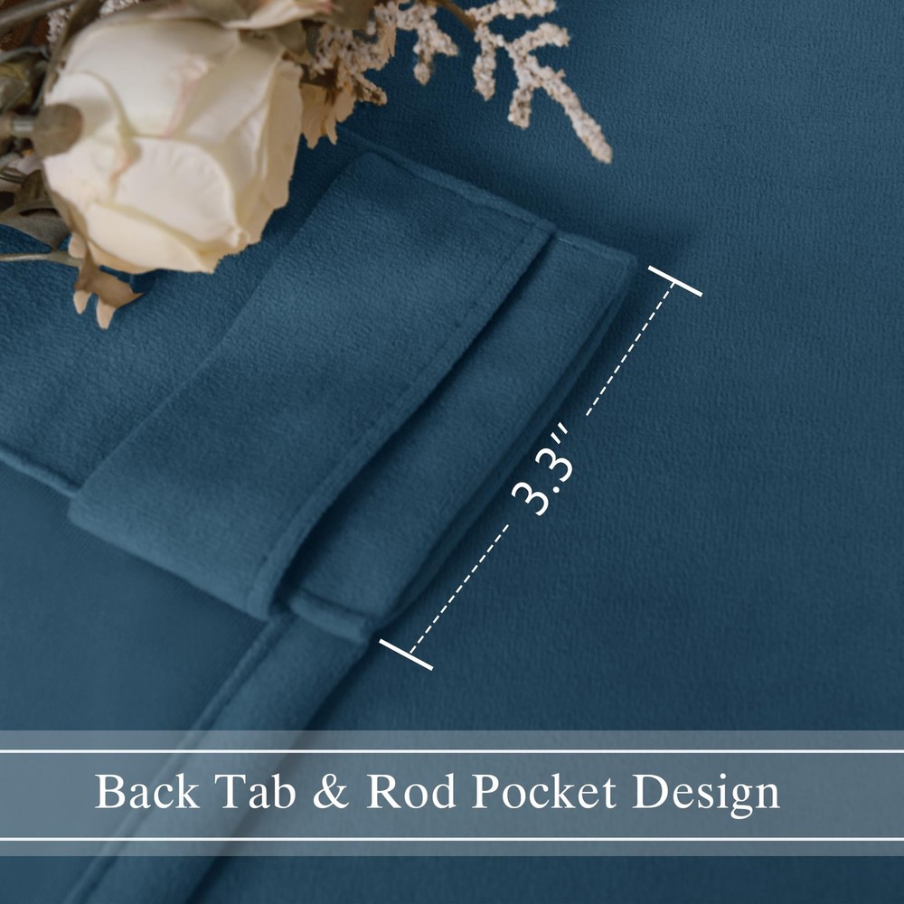 Velvet Curtains 108 inches Long - Rod Pocket and Back Tab Room Darkening Curt...