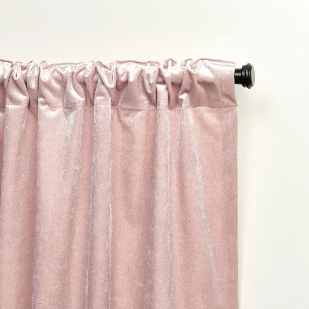 The Velvet Heavyweight Tab Top Window Curtain Panels in blush bring a luxurious look and feel to any room and offer a simple way to add color and texture to your decor. These plush velvet panels have a light-filtering opacity and filter light beautifully into your space while also providing privacy. Hang 3 ways: using the rod pocket, the back tabs, or with curtain clips (not included). For proper look and fullness, the curtains should measure 2-3 times the width of your window. LUXURIOUS: The Exclusive Home Velvet Heavyweight Tab Top Curtains offer a luxurious look for your windows in any room. The light-filtering fabric filters light beautifully into your space while also adding color and texture to your decor. LIGHT FILTERING OPACITY: light filtering opacity provides privacy to your room while still allowing natural light to shine through. It's perfect for diffusing light beautifully into your space. 3 HANGING OPTIONS: Drape these curtain panels (1) from the rod pocket for a classic look, (2) using the tabs to create an elegant pleated effect, or (3) using clip rings for easy, slide open and closed (clip rings are not included). Fits up to 1.5" diameter rod. SET OF CURTAIN PANELS: Includes (2) curtain panels, each measuring 52"x 63". For proper look and fullness, the curtain panels should measure 2-3 times the width of your window/opening. PLUSH VELVET: These well-crafted, plush velvet panels enhance any space in your home with vivid color and lavish texture, Hang them in your living room, dining room, bedroom, office, hallway, or entryway.