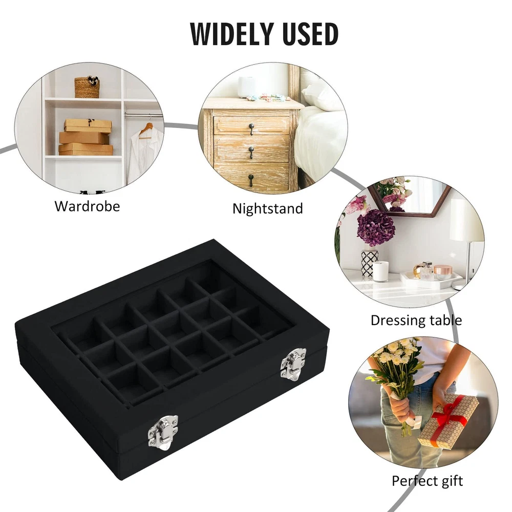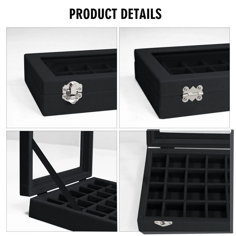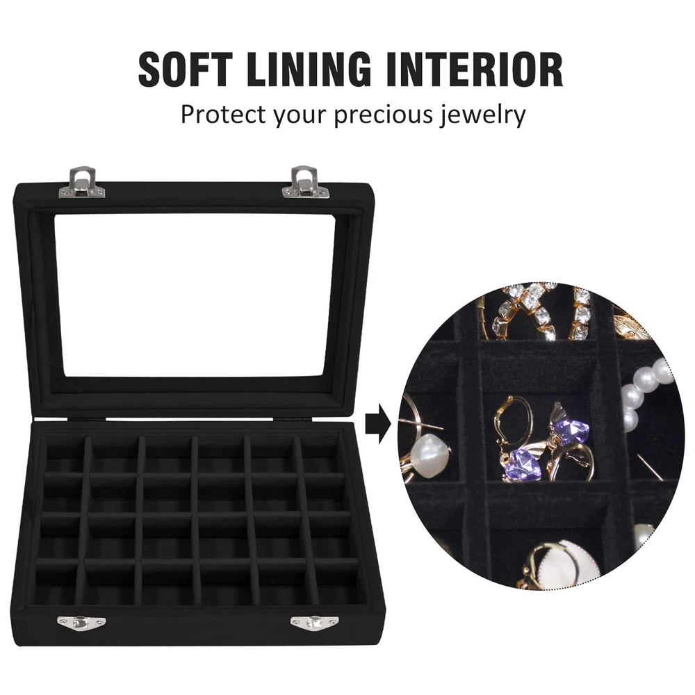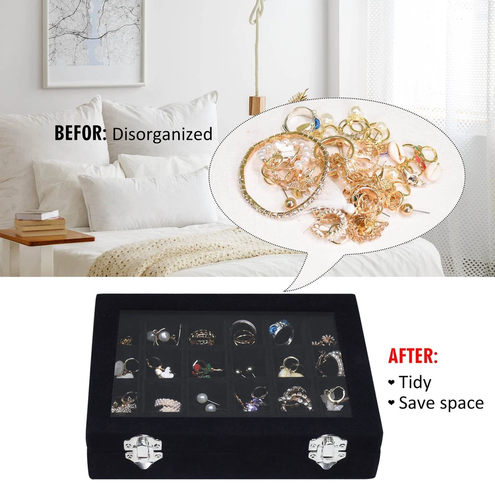 Velvet Jewelry Box 24 Grid Jewelry Ring Display Organiser Box Tray Holder Ear...