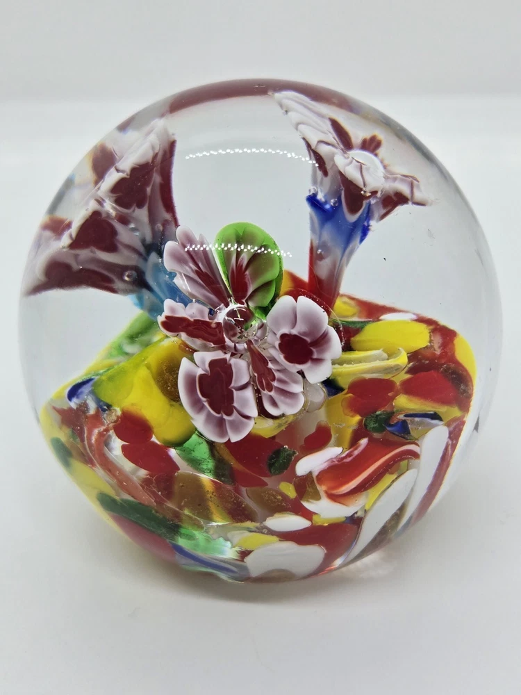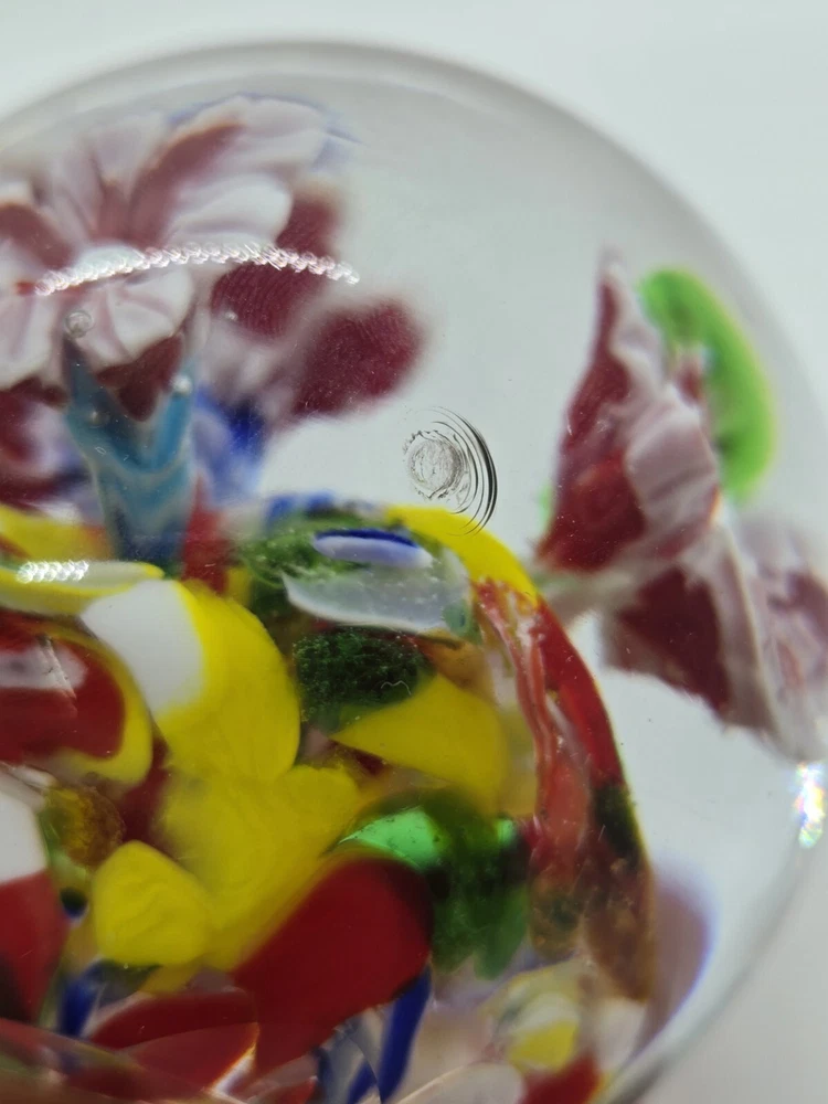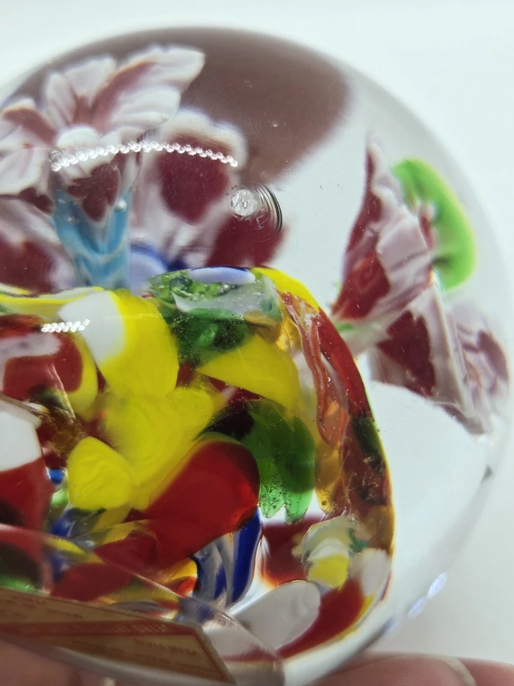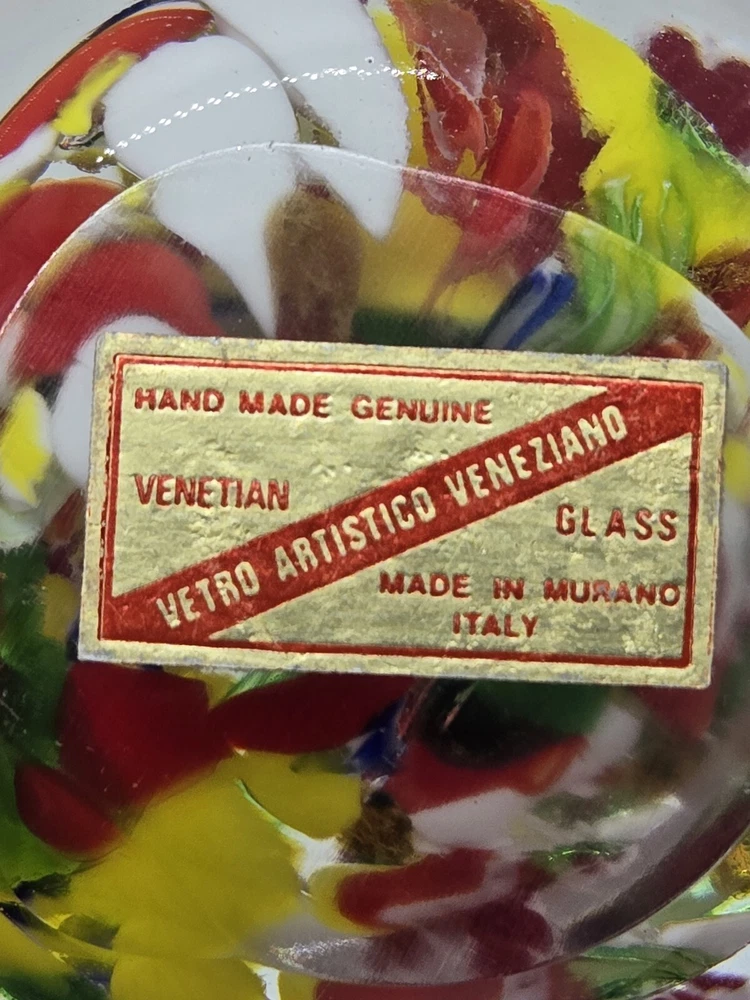 Venetian Glass Paperweight Vetro Artistico Veneziano Hand Made In Murano Italy. Item has a couple of defects but is in good condition, please see pictures. Has its sticker still. Is a multicolored floral design.