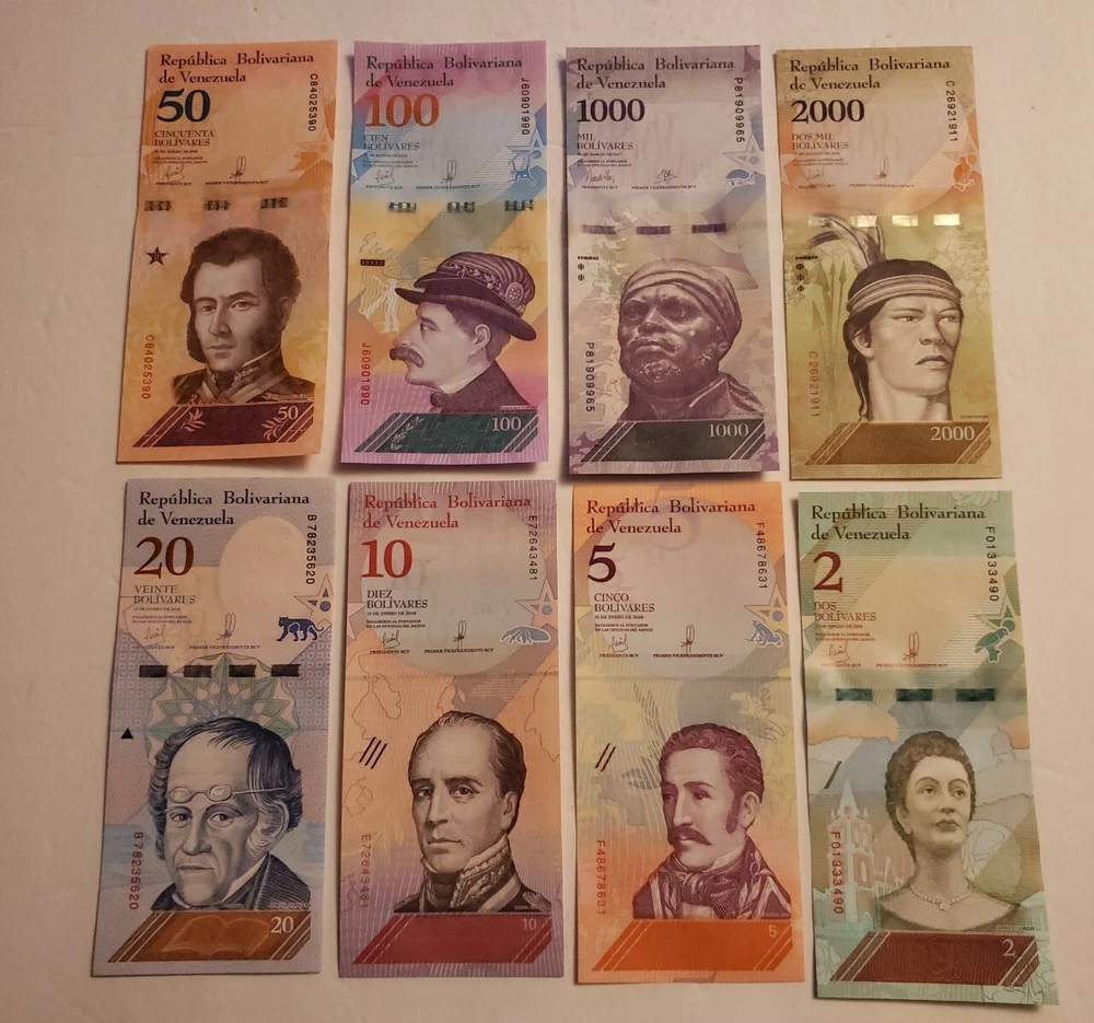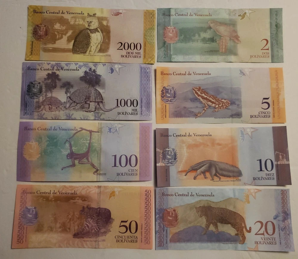Venezuela Bolivares Set of 8 Banknotes World Paper Money UNC Currency Bill Note. You will receive one of each of the notes pictured in each set of 8. All notes are uncirculated and are verified as authentic currency. Buy with confidence. Long time seller. Fast, free shipping. Your satisfaction is important to us. Please email us with any questions, comments, or concerns you may have. We try to reply to all email immediately or ASAP. Thank you for looking at our items. Have a Blessed Day!